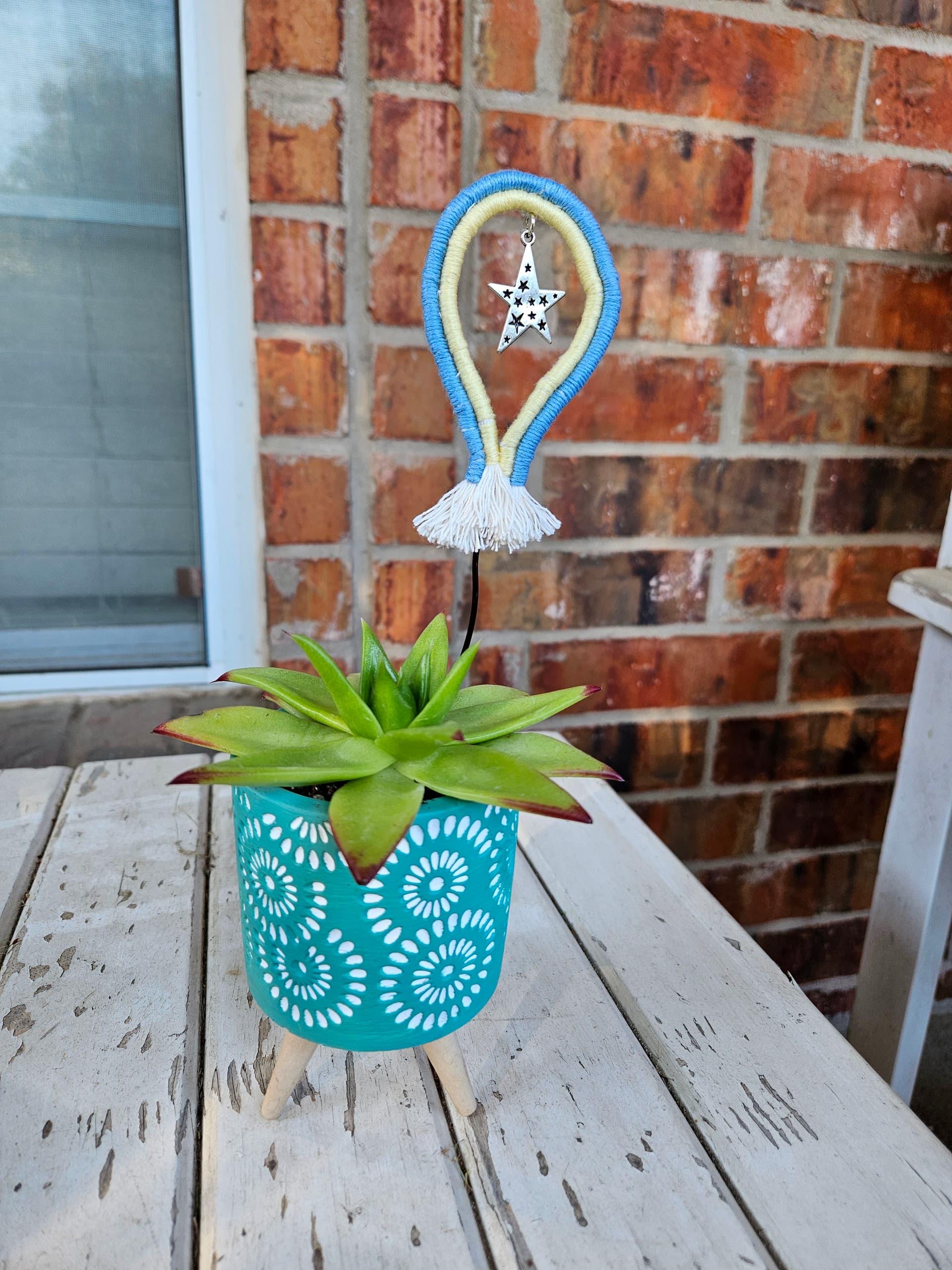 Prompt: Free Range Team: Cabin Stargazers Project Name: Macrame Balloon Project Link: Brief Description: I created a little balloon with my Art Club supplies and decided it would make a cute plant pick.