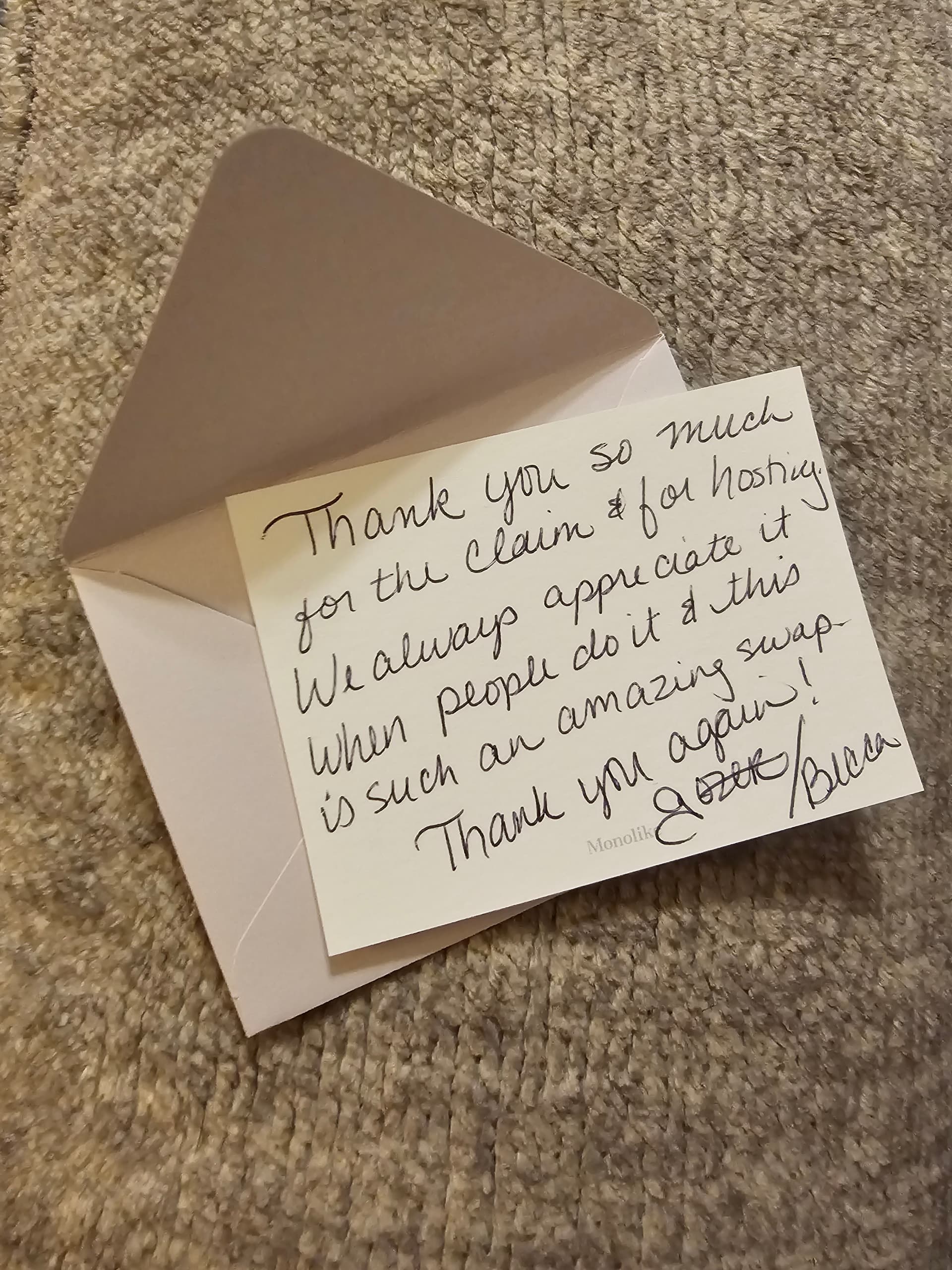 Handwrite a letter or card- In addition to my 3 postcards, I sent my mom a birthday card, and delivered an overdue wedding card.
