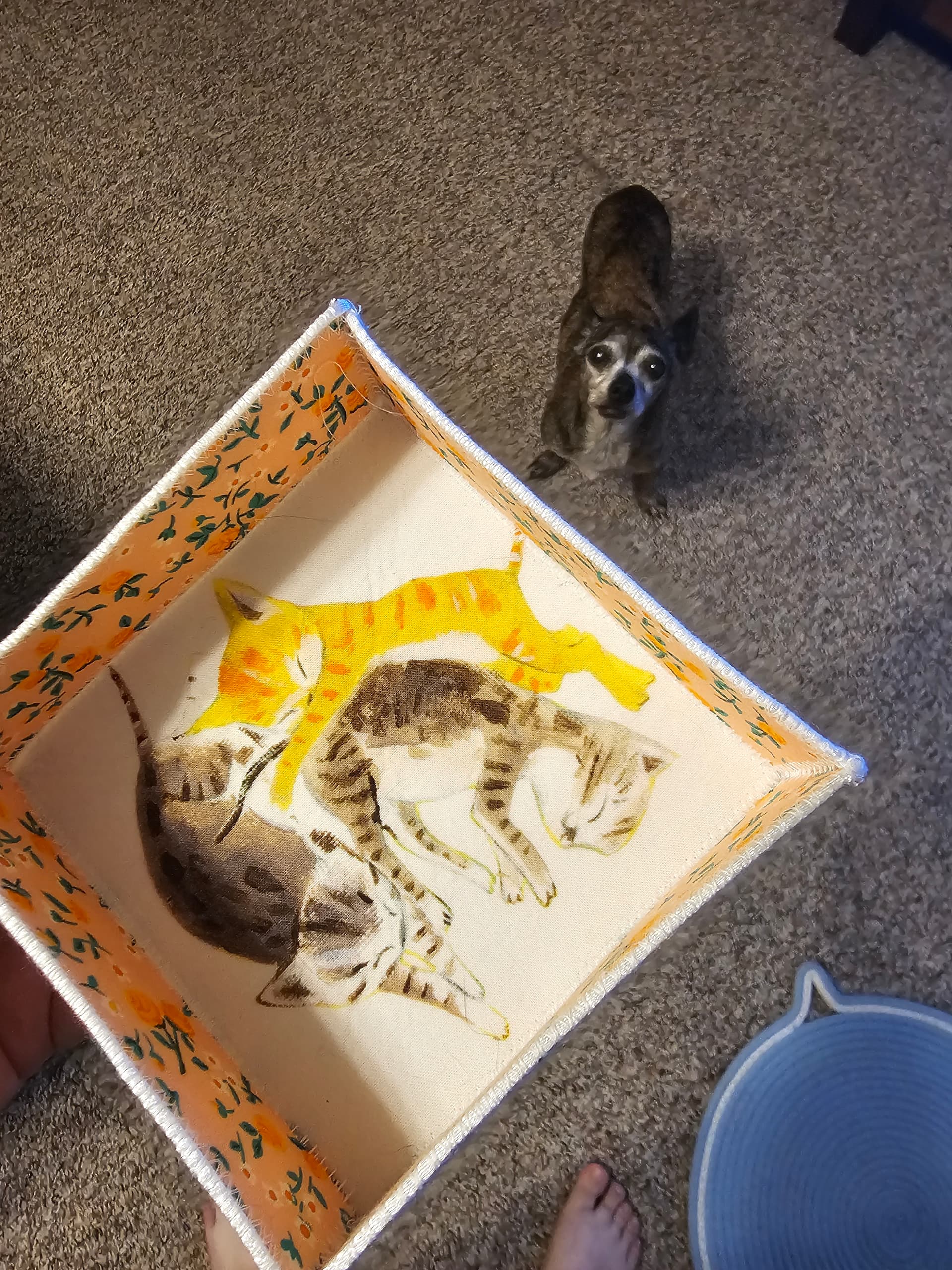 Random act of craftiness. I gave this little tray to my mom. It looks like her three cats!