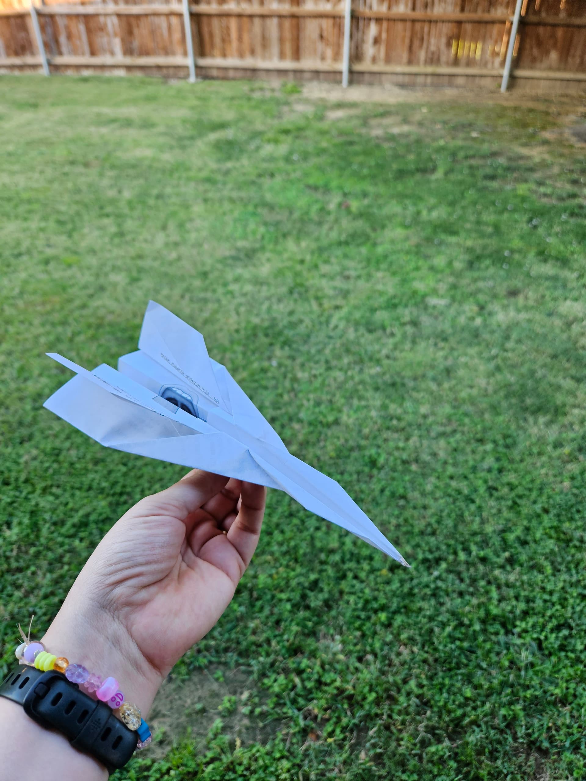 Prompt: Zap 4 Team: Cabin Finger Painters Project Name: Paper airplane Project Link: N/A Brief Description: Made for an Adventure Club prompt Project Photo:
