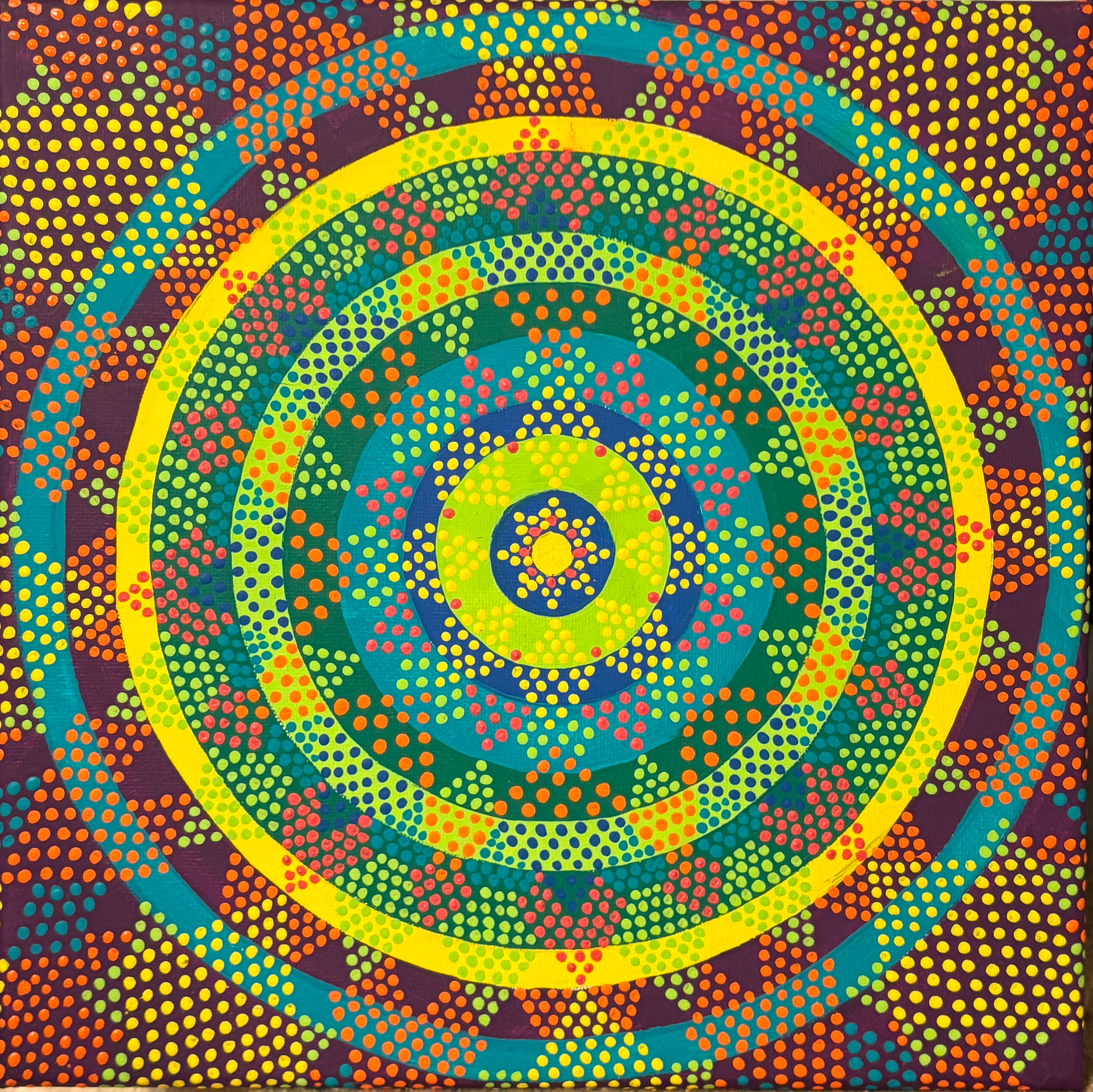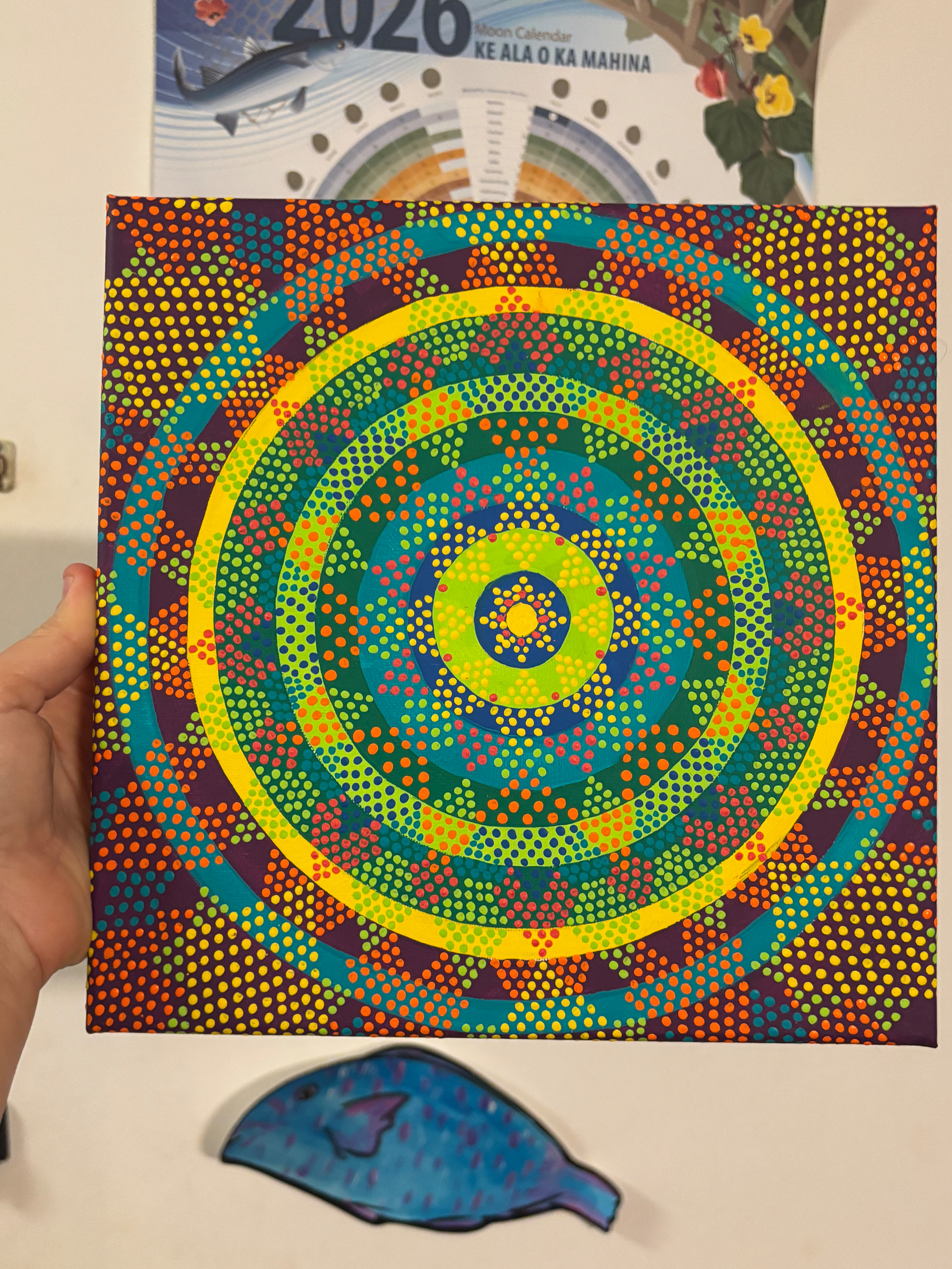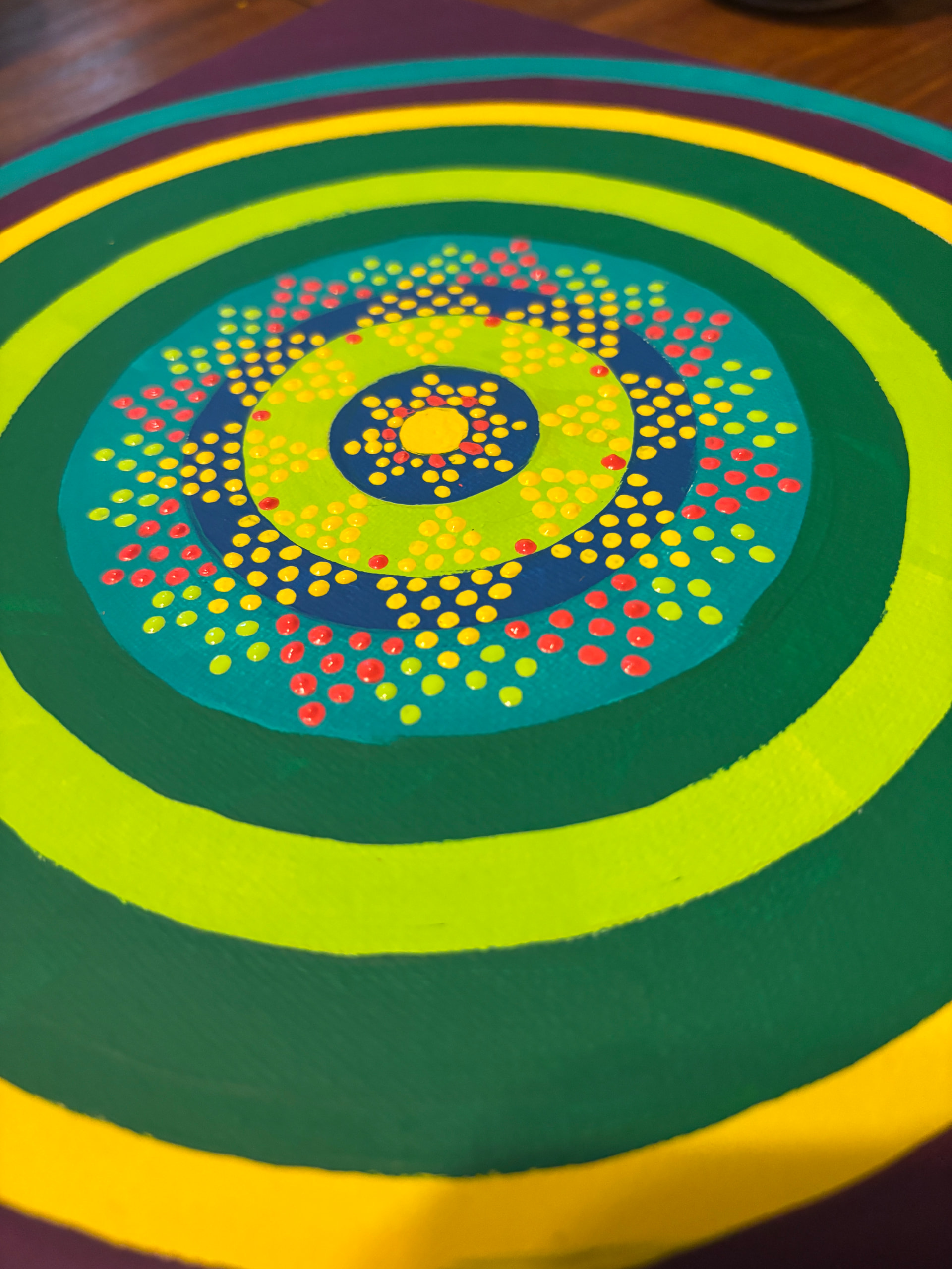 Then, I just started from the middle and ad-libbed outward until it was mostly full. I painted in bits kver several days because my far-sightedness is finally catxhing up with me and these dots were making my eyeballs go a little batty!