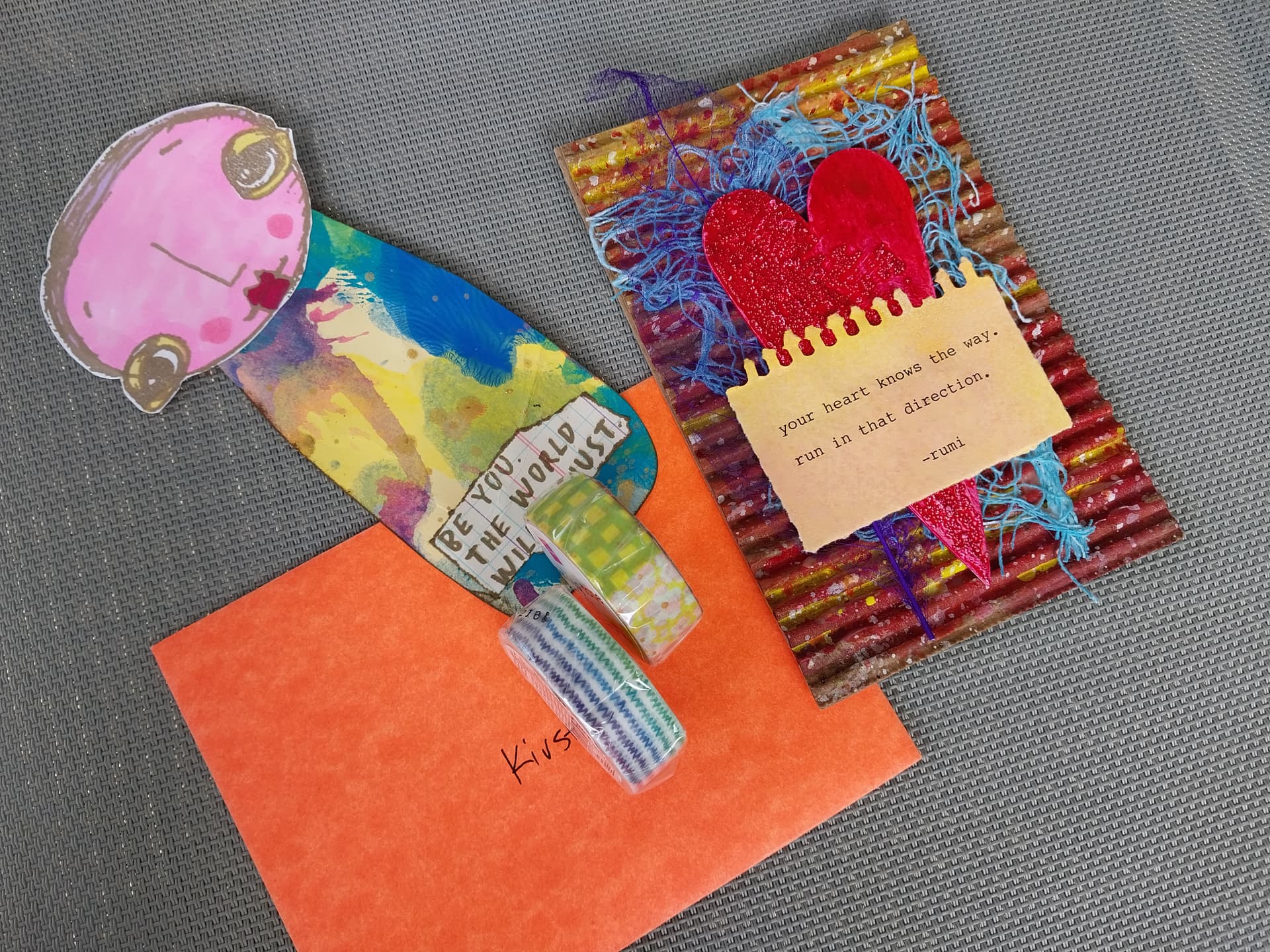 Gorgeous 4x6 artwork, a funky paper character, and super-snazzy washi tape!!
