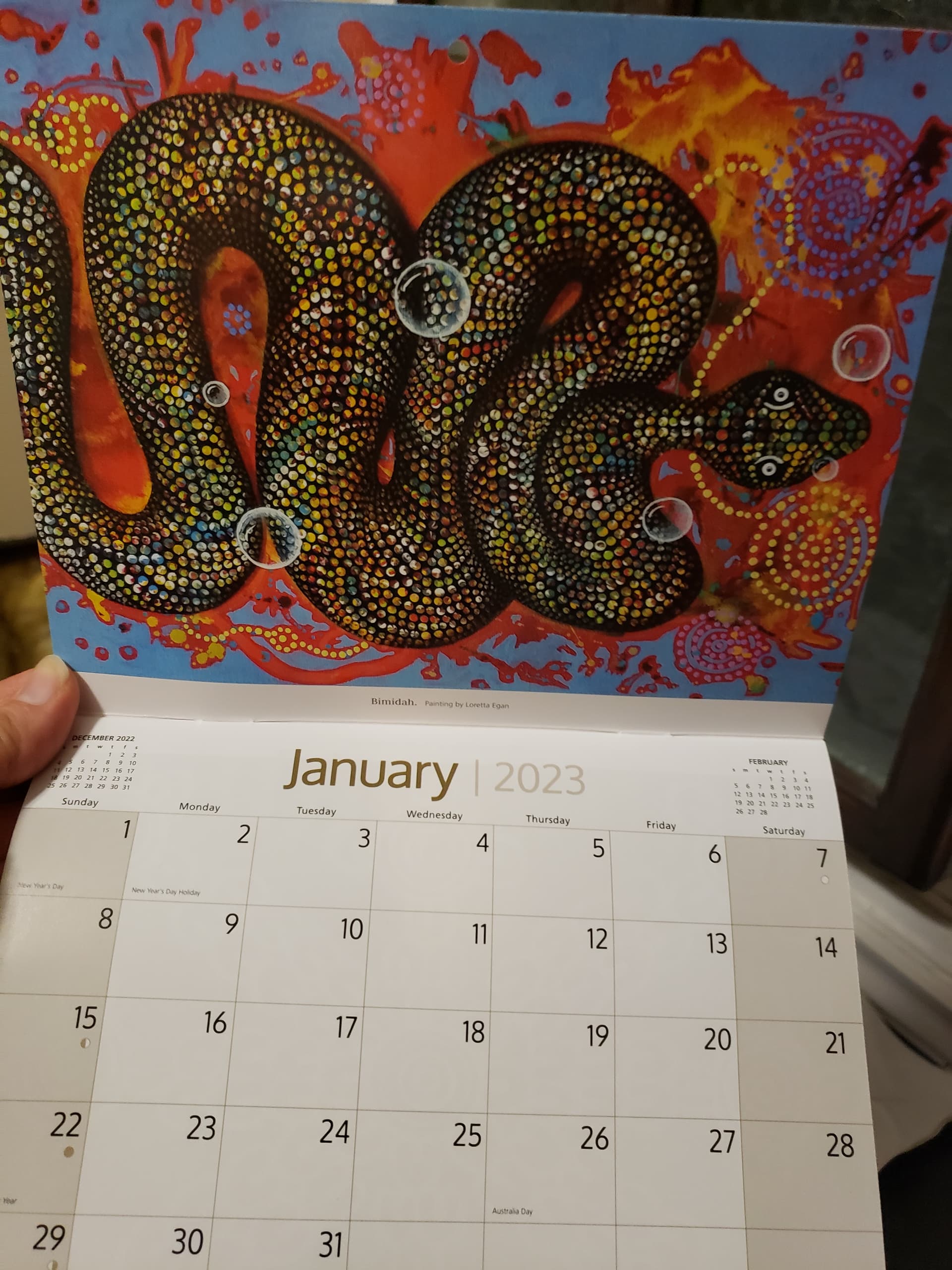 The calendar is fabulous…I love aboriginal art. (although, I am frantically searching for naked men in tubs calendar as well…