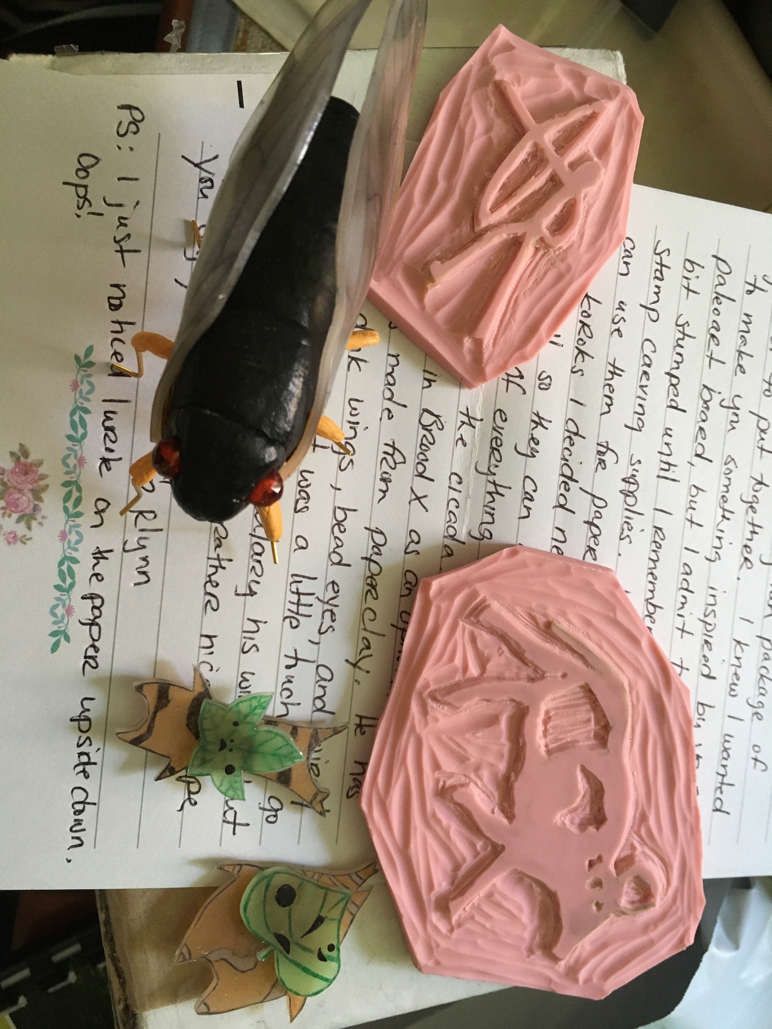 I just got a lovely angel package from @Rlynn! She sent paleoart stamps, tiny korak magnets for hiding & finding around the house, & a cicada sculpture!