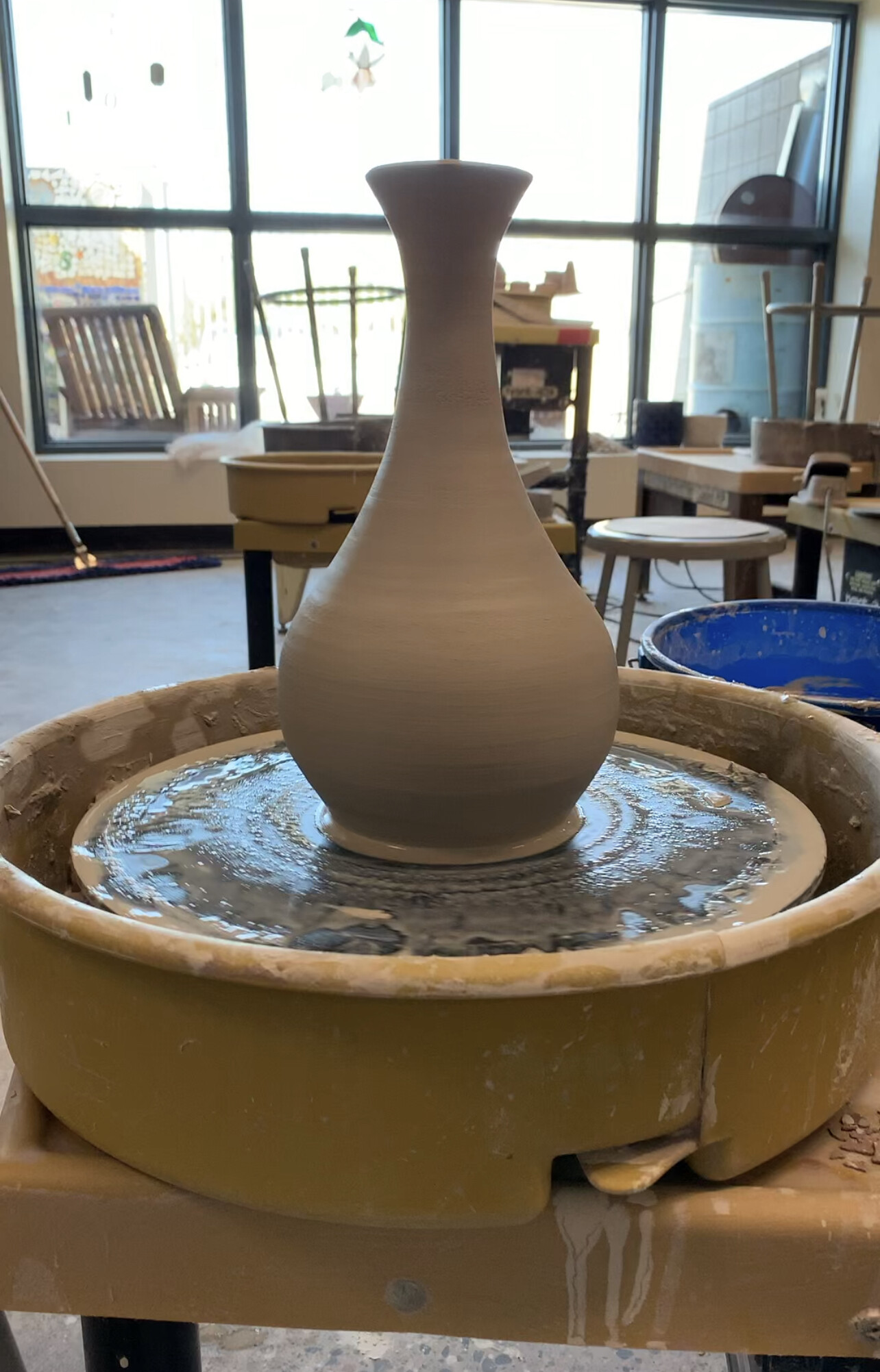 I used WS-5 clay by Laguna. It’s a white clay body. And then I applied clear crackle glaze over it. The black you see is from the smoke and fire.