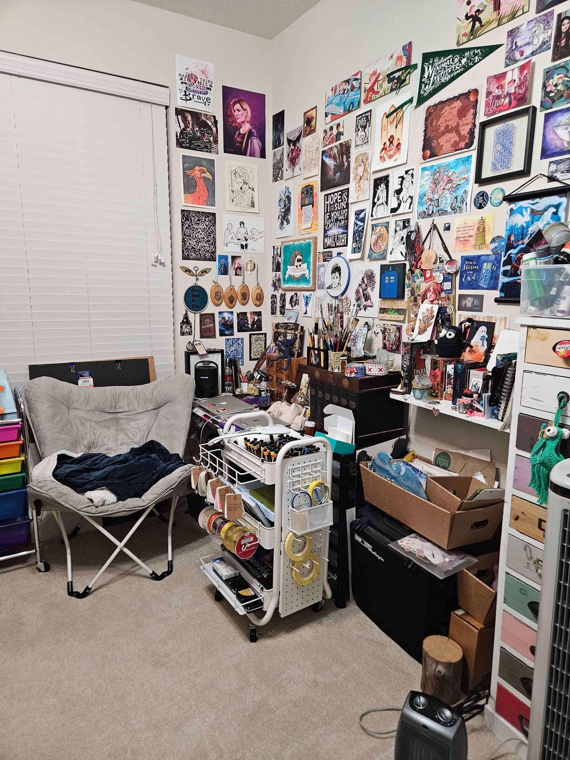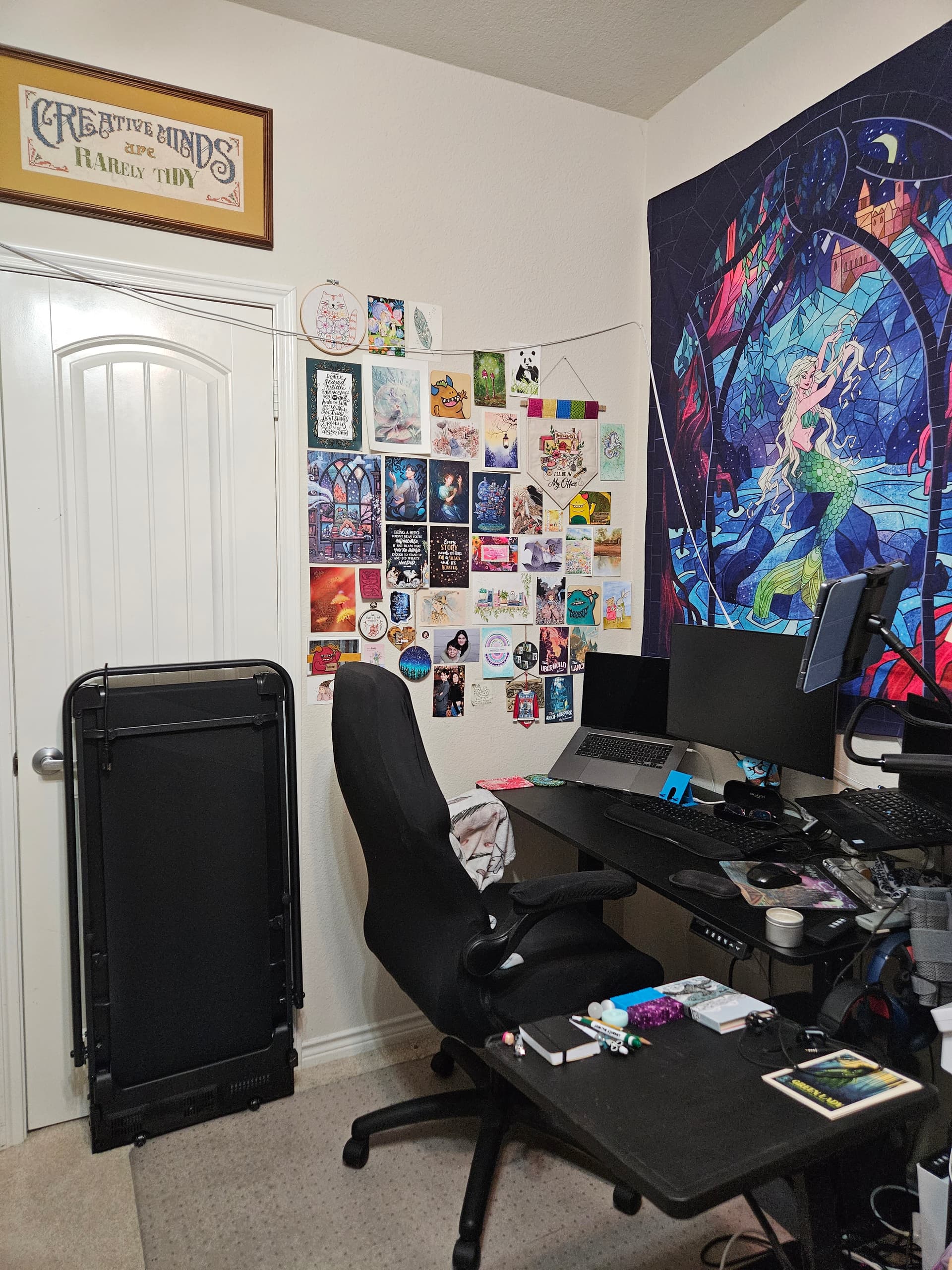 And just so you have the complete picture, here’s the corner of my room for my work desk where I spend all day coding. Note the awesome art wall featuring a lot of LC art!
