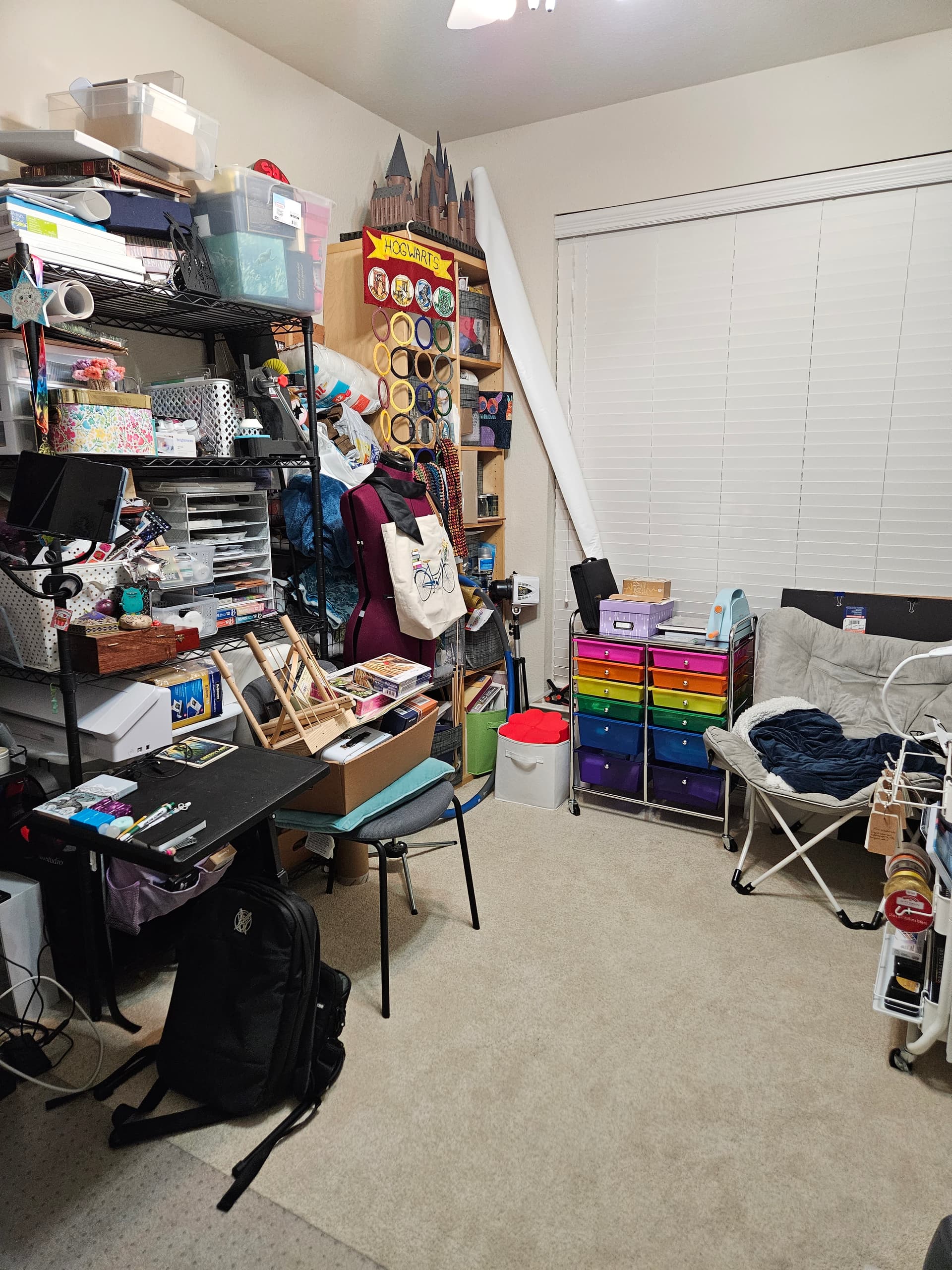 I had the past week off work and decided to declutter and reorganize my craft room. I only took one before picture because the mess was frankly embarrassing. (Everything in the box on the chair with the blue cushion is going to the Creative Reuse store).