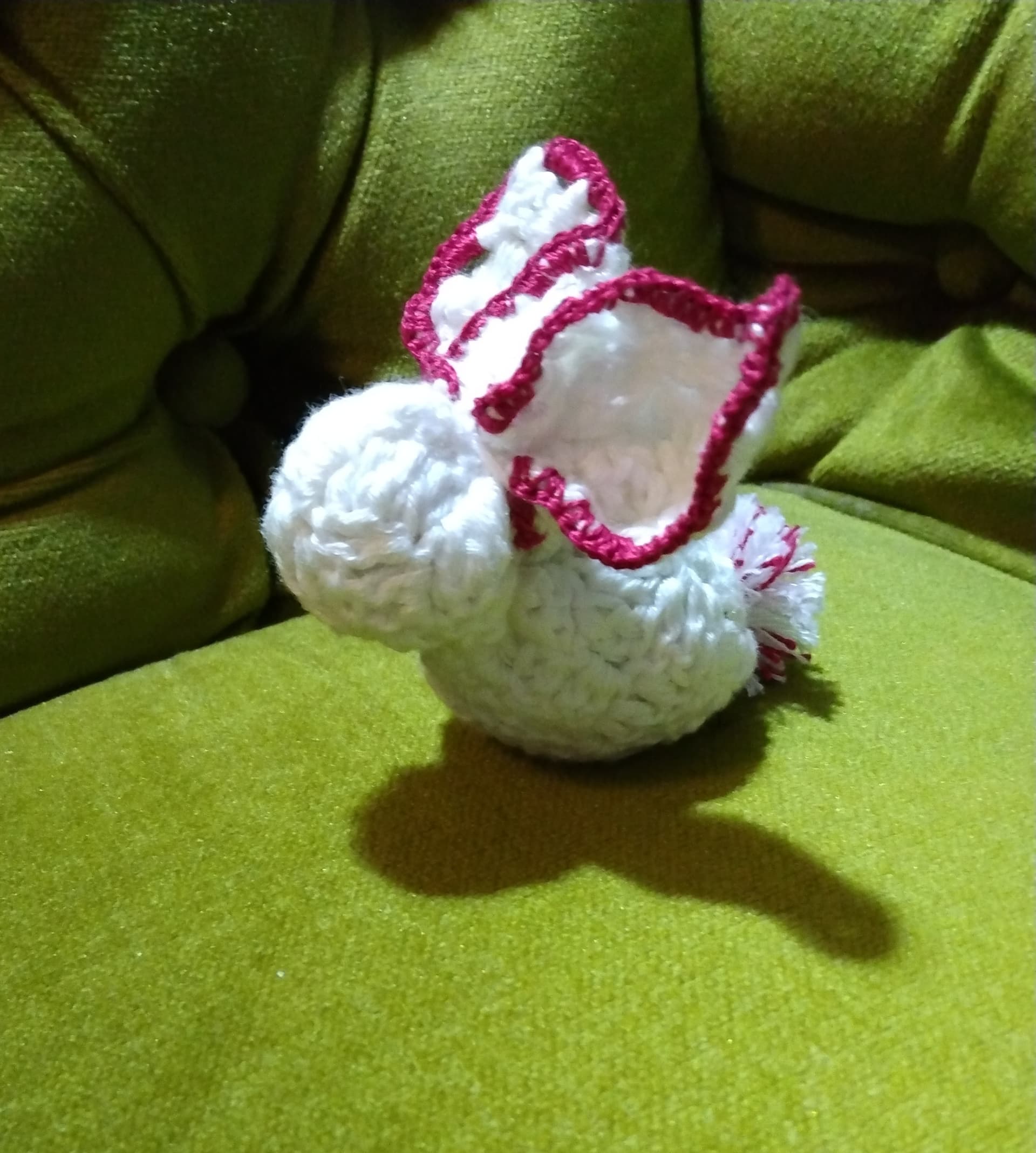 The bunny was part of a dish that broke, and he was sitting on my table, waiting for inspiration. So I looked for something round and yellow, and there was a scrap of aqua paper…