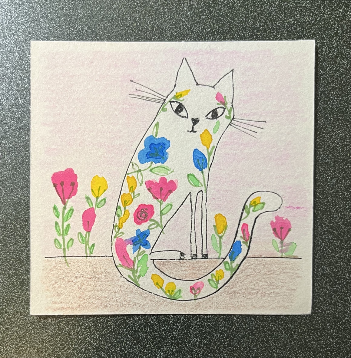 Love the bright flower covered kitty! Looks great