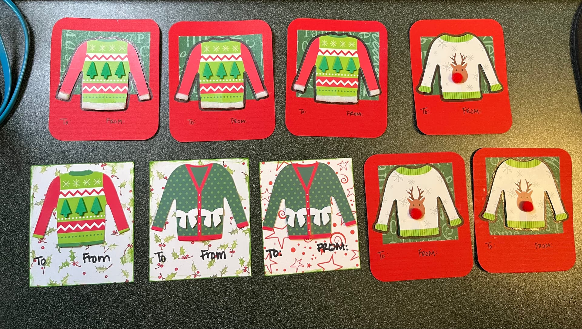 Shortly before Christmas, I found a bunch of festive cupcake pics at a yard sale. Since I’m not the Betty Crocker I’d like to be, I decided that their best use was as gift tags!