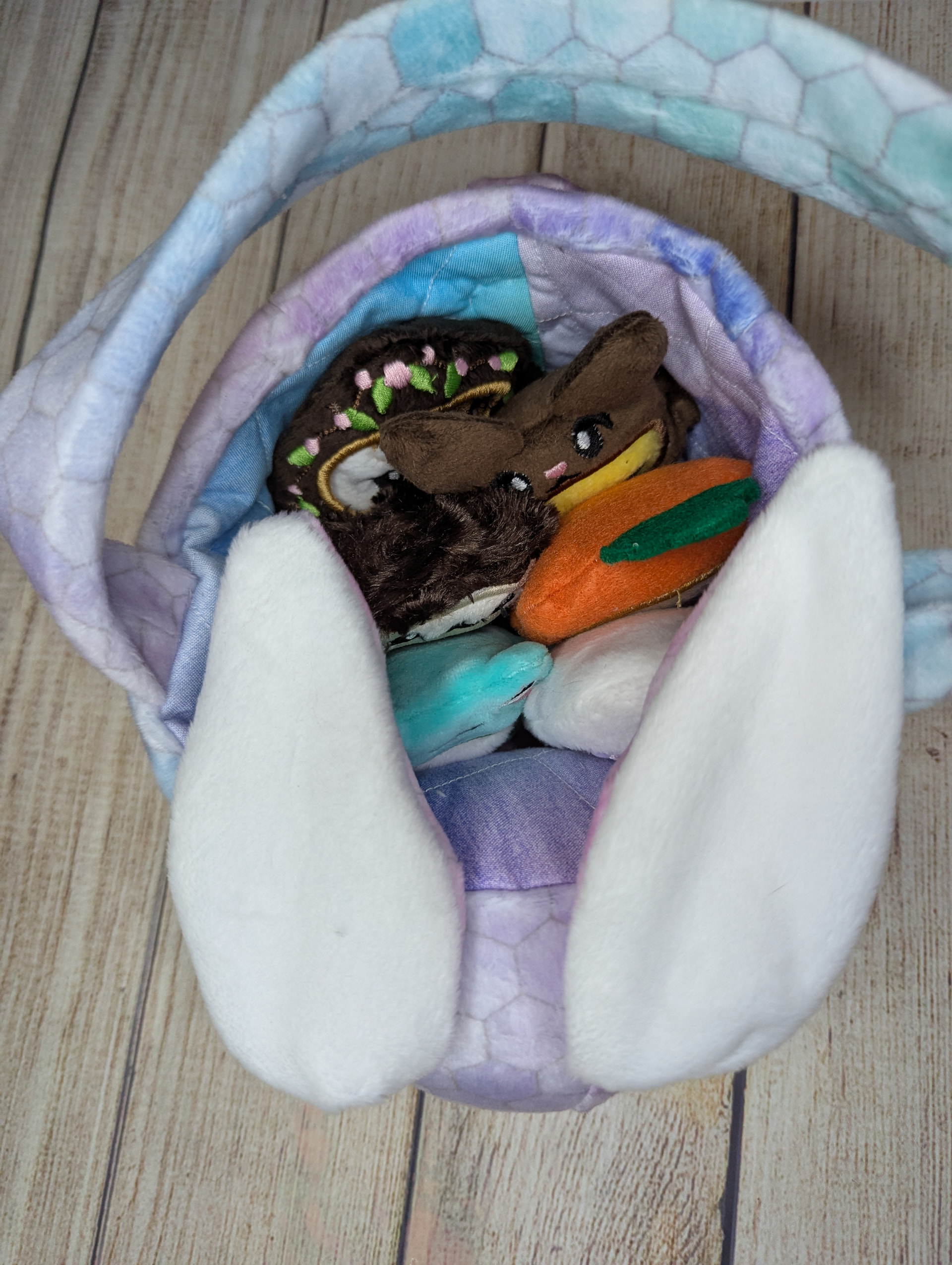I made these adorable little plush animals and costumes to put in this cute bunny basket for my niece. I will give them to her tomorrow for Easter. I had to stop myself at 6, next year she can get more ![]()