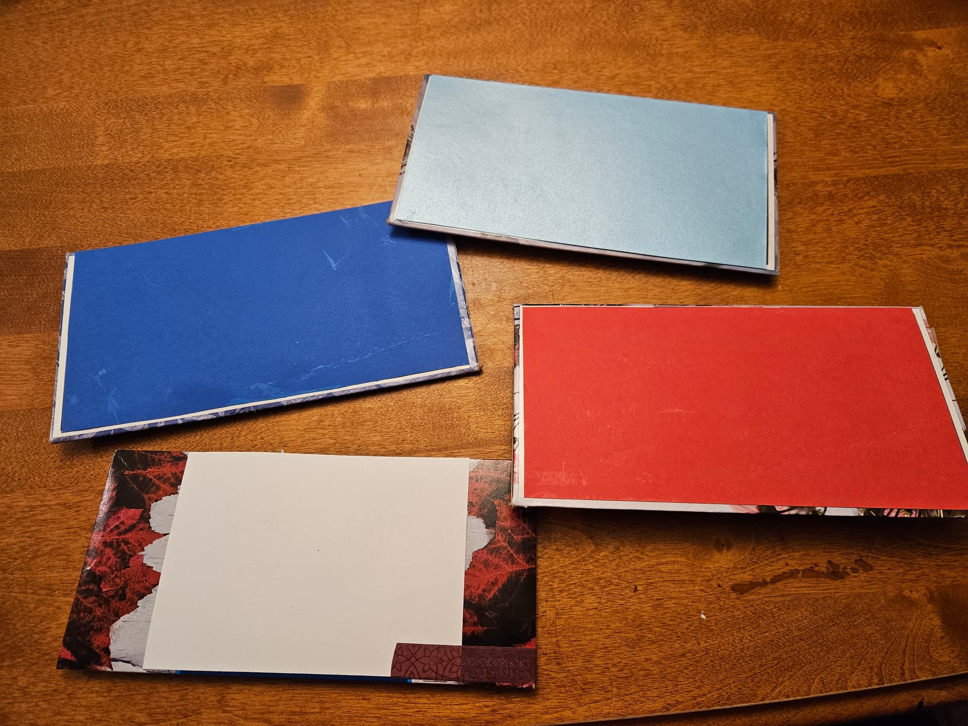 Going through my paper stash. Found a bunch of old wall calendars and finally made them all into envelopes. Also turned some tissue boxes into envelopes.