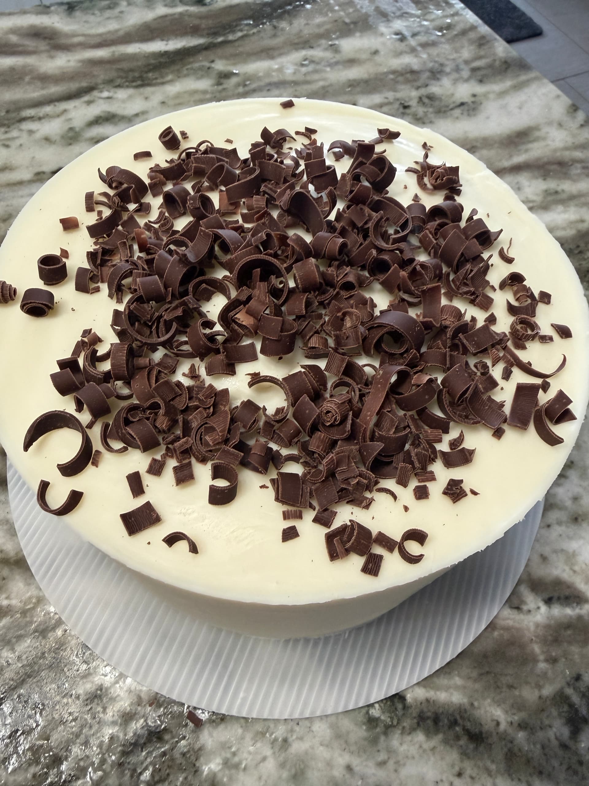 Top with the next layer of cake and repeat until all cake layers are used.