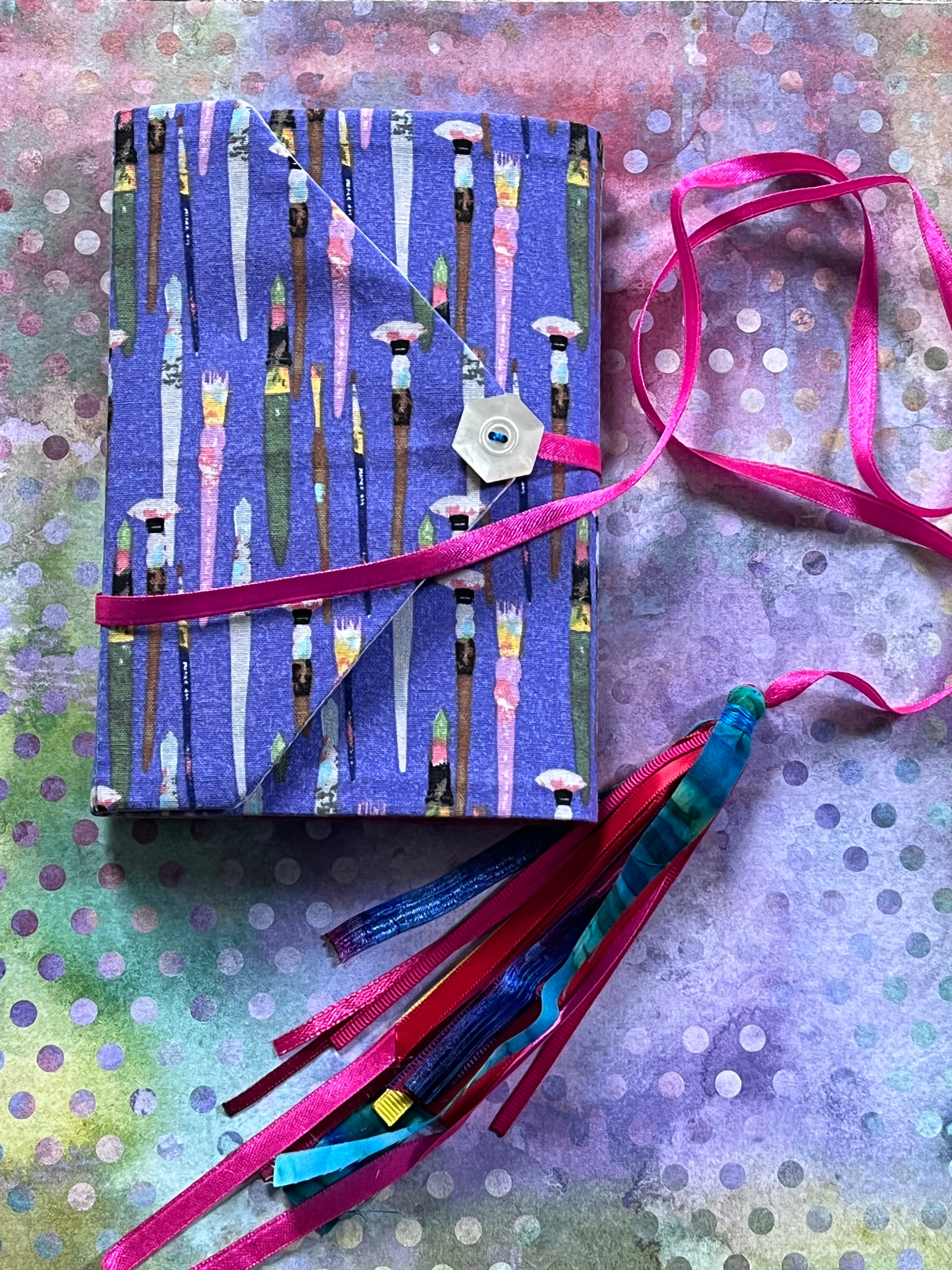 What a fabulous notebook and so pretty. I love the fabric choices and those pages are just begging for some lazy afternoons sketching!