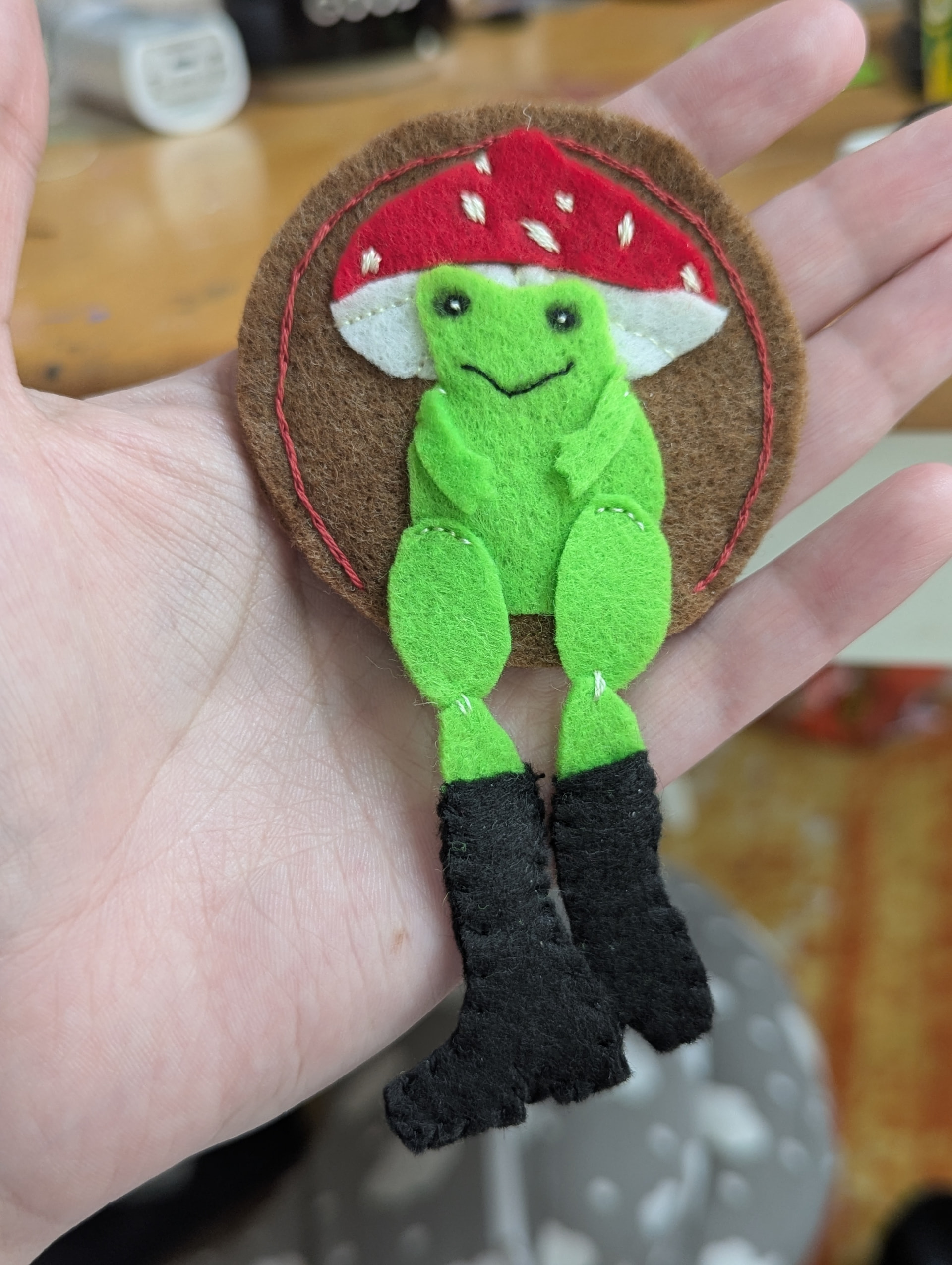 She mentioned frogs remind her of her aunt who recently passed, so I did a frog with some fabulous tall black boots!