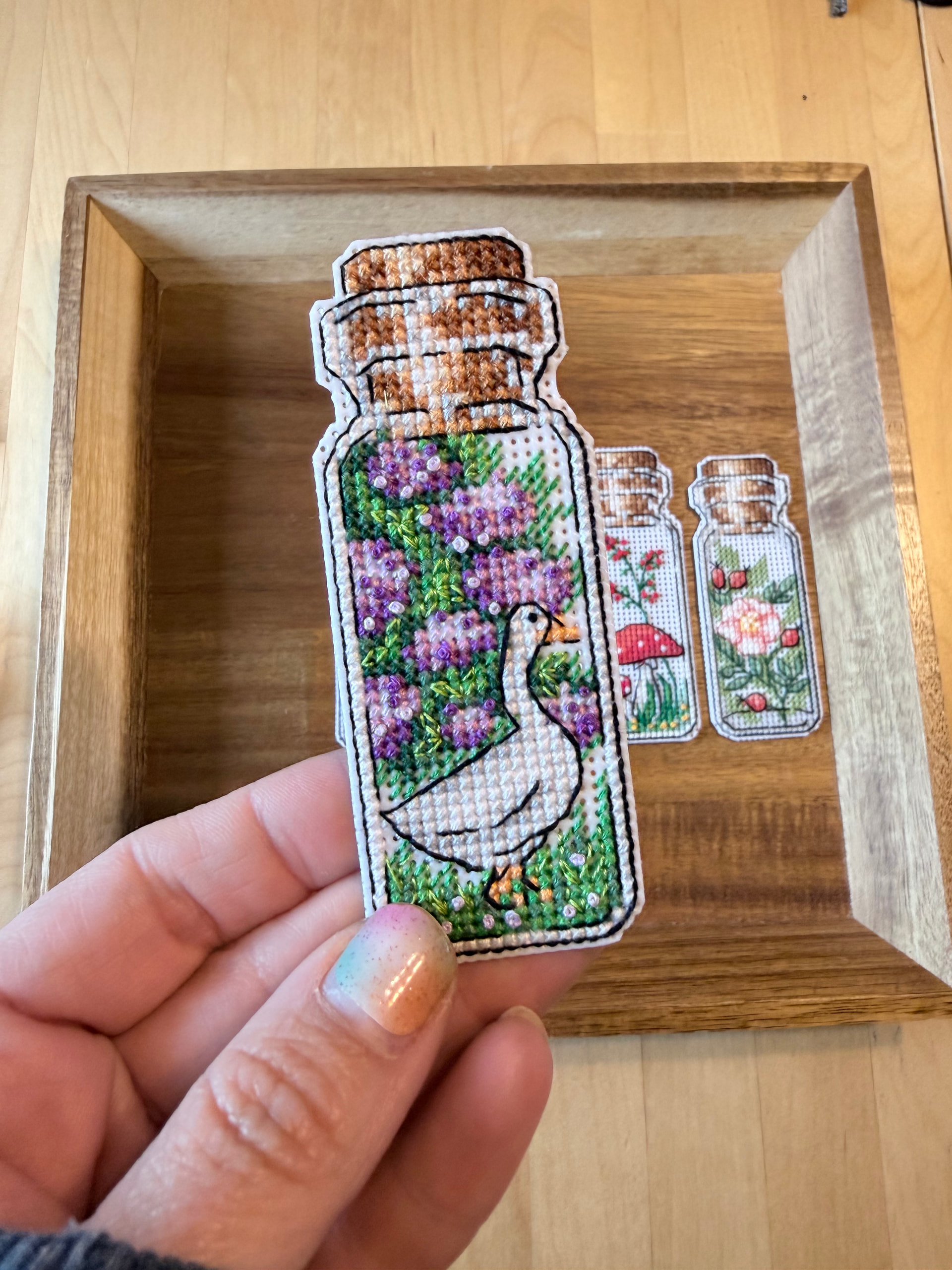 They’re made on 14 ct plastic Aida. I’m thinking they made be turned into magnets, but I’m open to other ideas!