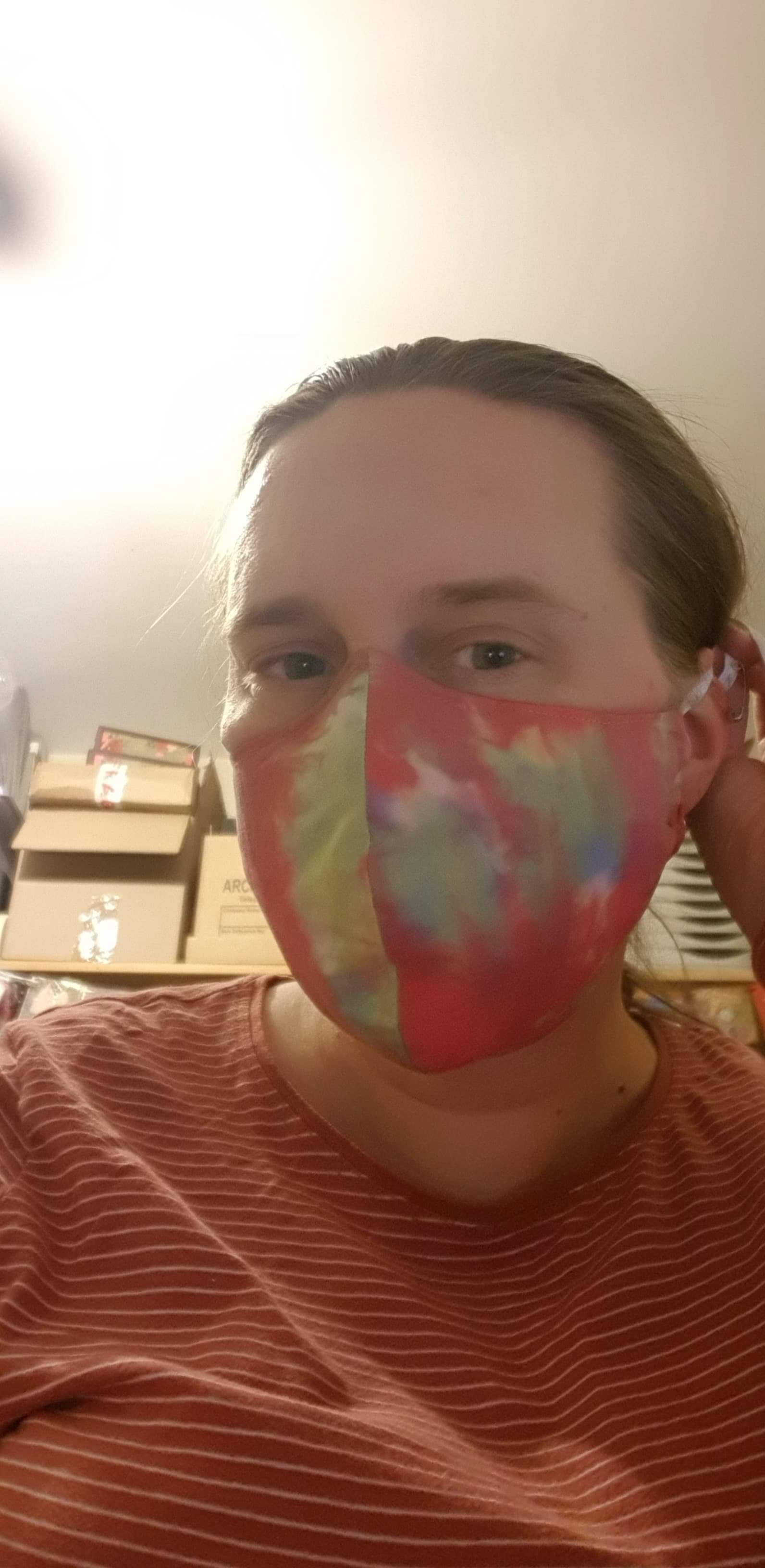 I’m struggling with your second point. I can see on the green and yellow tie-dye mask that you have an additional stitching line down the front seam. Is this through one layer only? I’m sure it’s me being daft, but I couldn’t work that bit out.