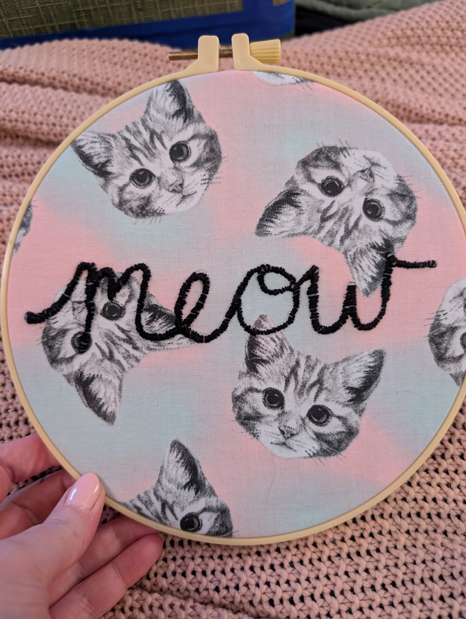 Yet again, I saw something on Instagram and had to try it. I’ve seen several people make a design on fabric by “drawing” with hot glue, and then cover it with embroidery floss. I don’t generally use embroidery floss, so I had to get some, but the fabric I chose was leftover from making masks 6 years ago.