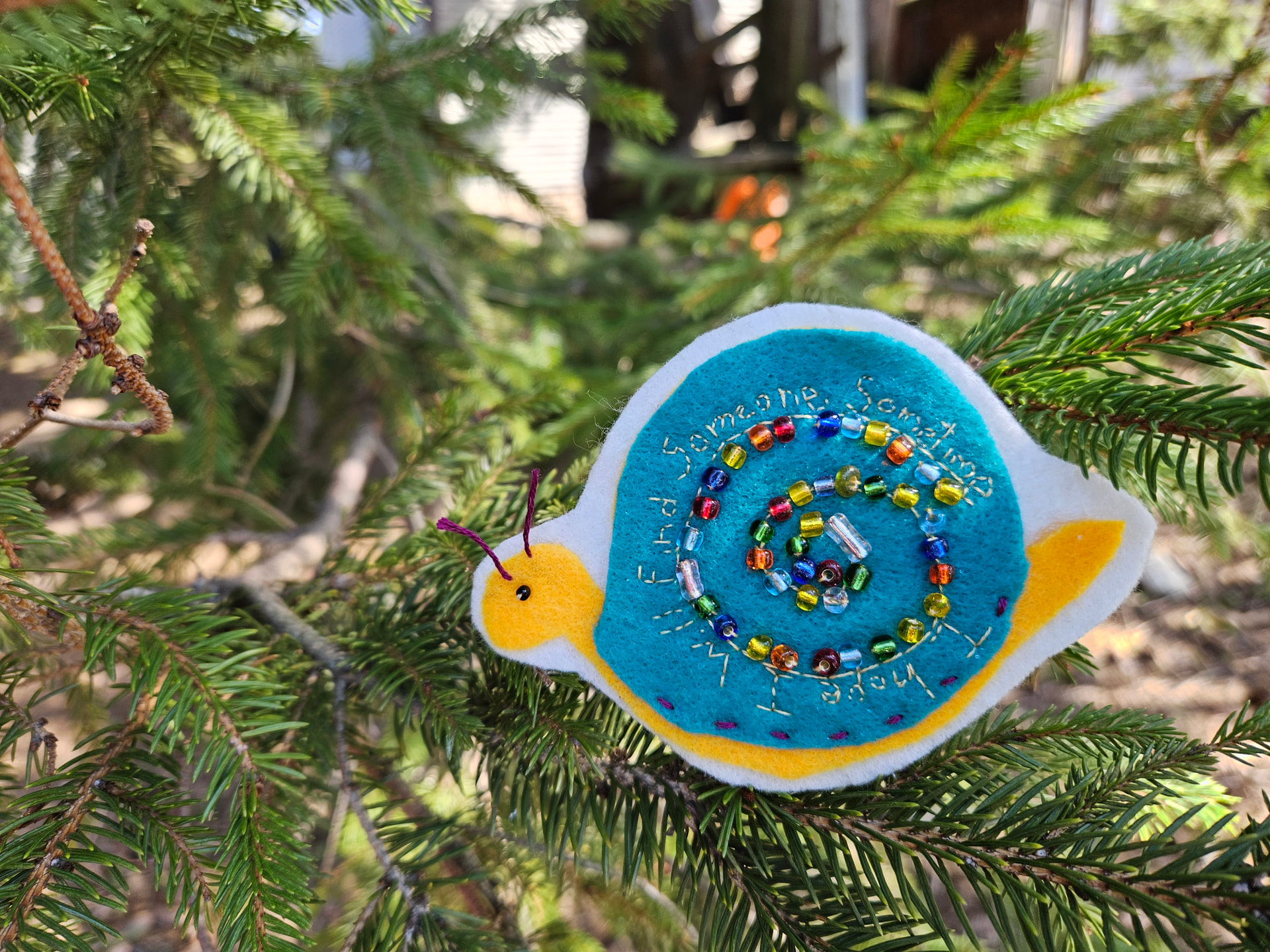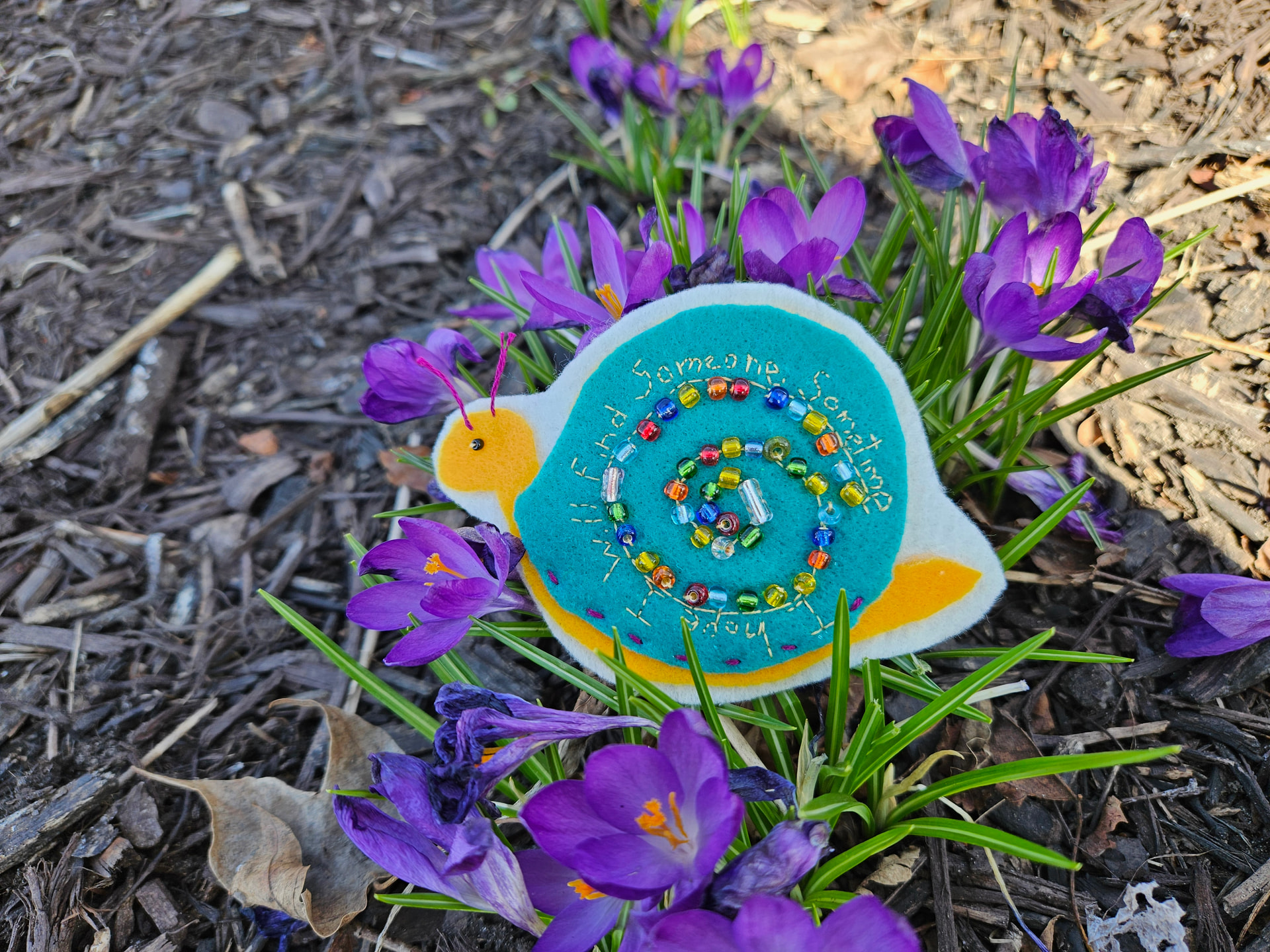 I updated my post with photos more worthy of Jeremy the Snail. The patch arrived on Wednesday, but I’ve been sleeping off a germ and didn’t post until today. I did it in a hurry since @Manders has already patiently waited several days. However, I thought my sweet little snail deserved a spring photo shoot.