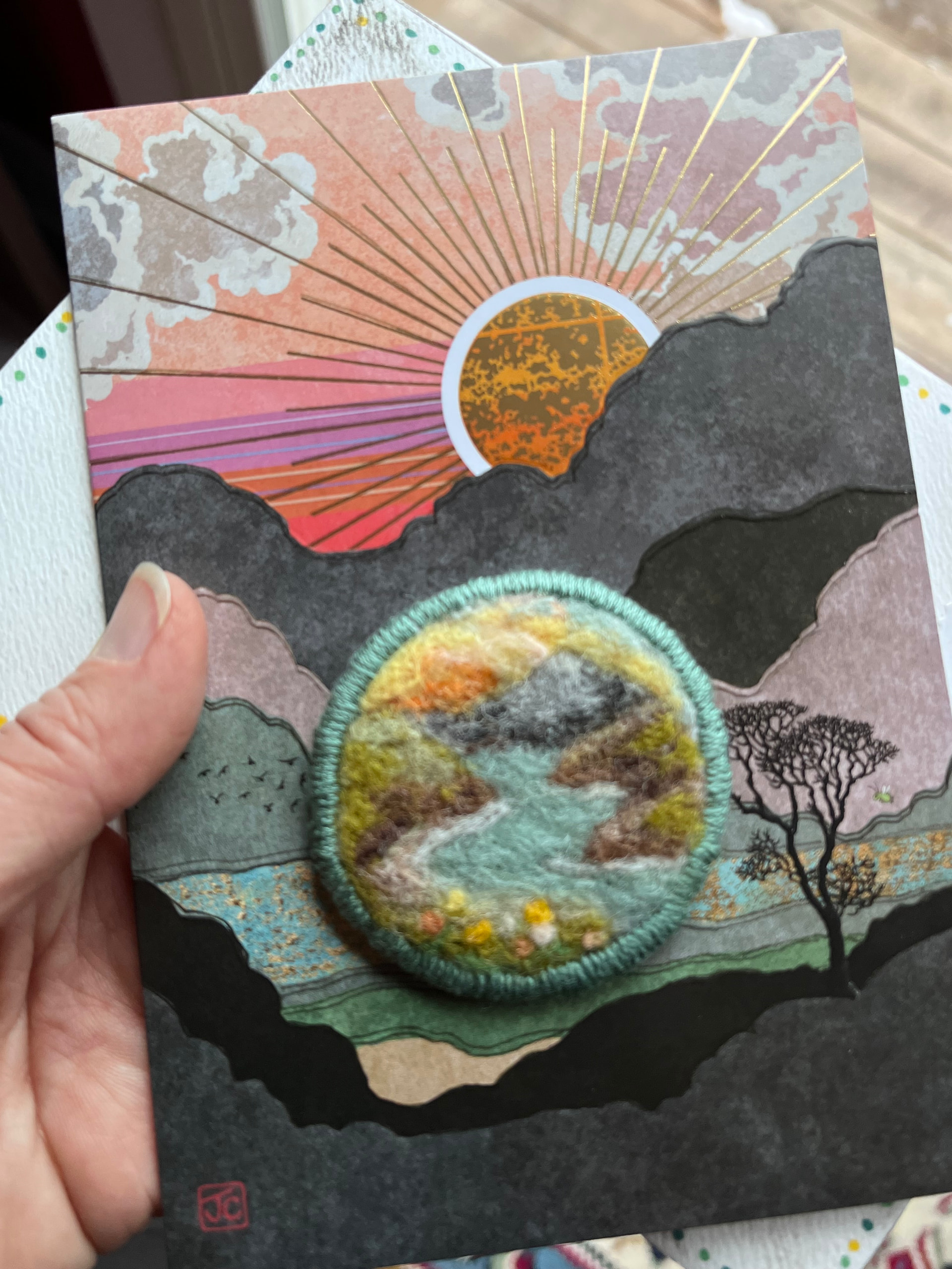 I received an absolutely darling felted badge from @Nightlight, my husband immediately tried to steal it, lol.