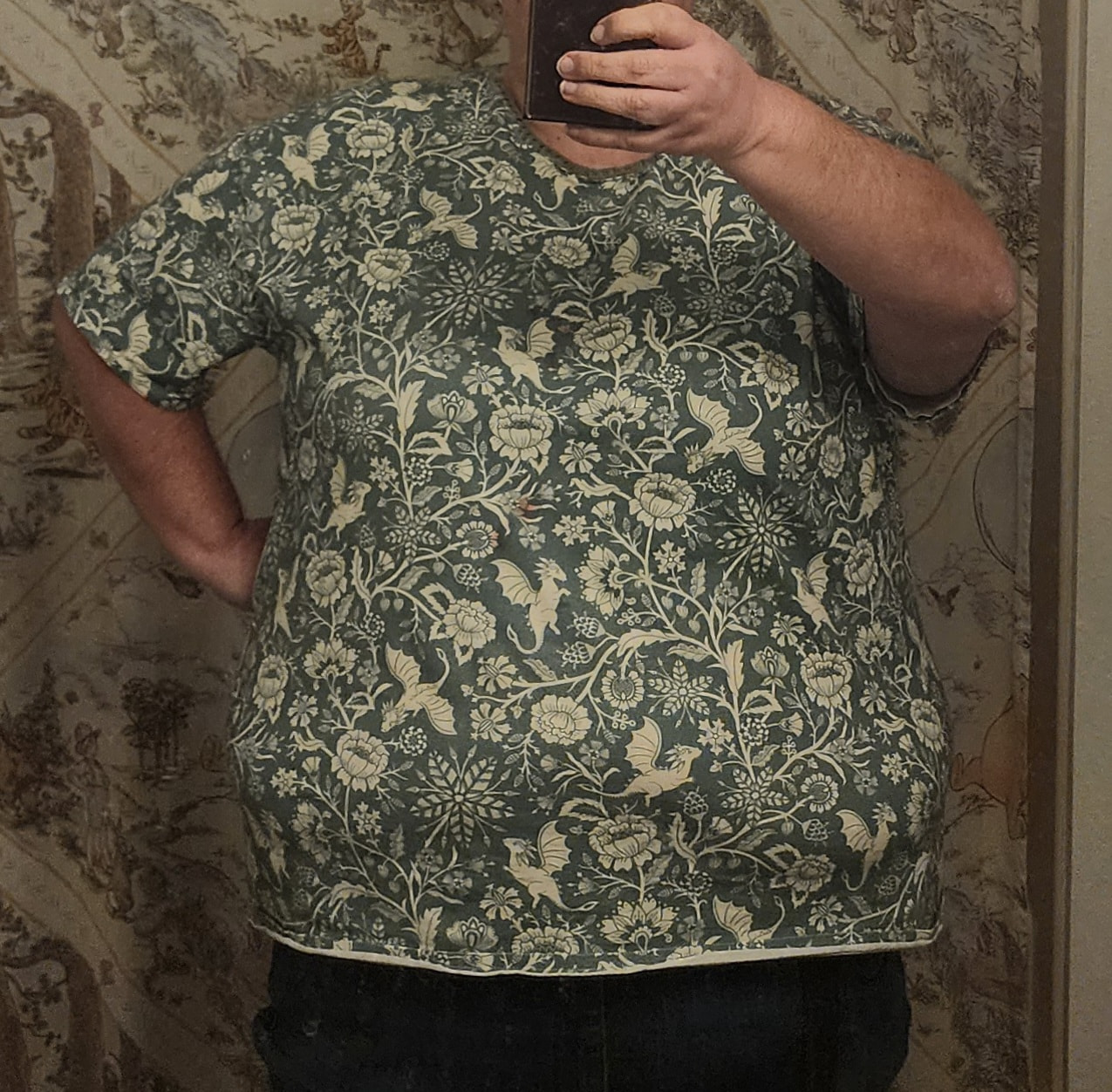Shirt #2 in my choosing crafting over shopping. I like the overall look, but this one isn’t as comfortable as the Teal shirt. The fabric is a little too heavy, the cut a little too close. And the hems are doing that thing where they want to flip inside out. But I still like it better than shopping!