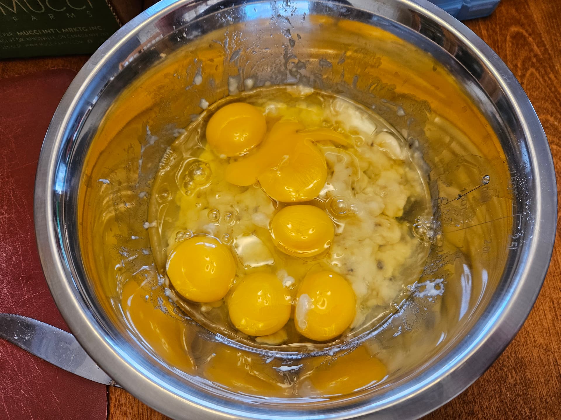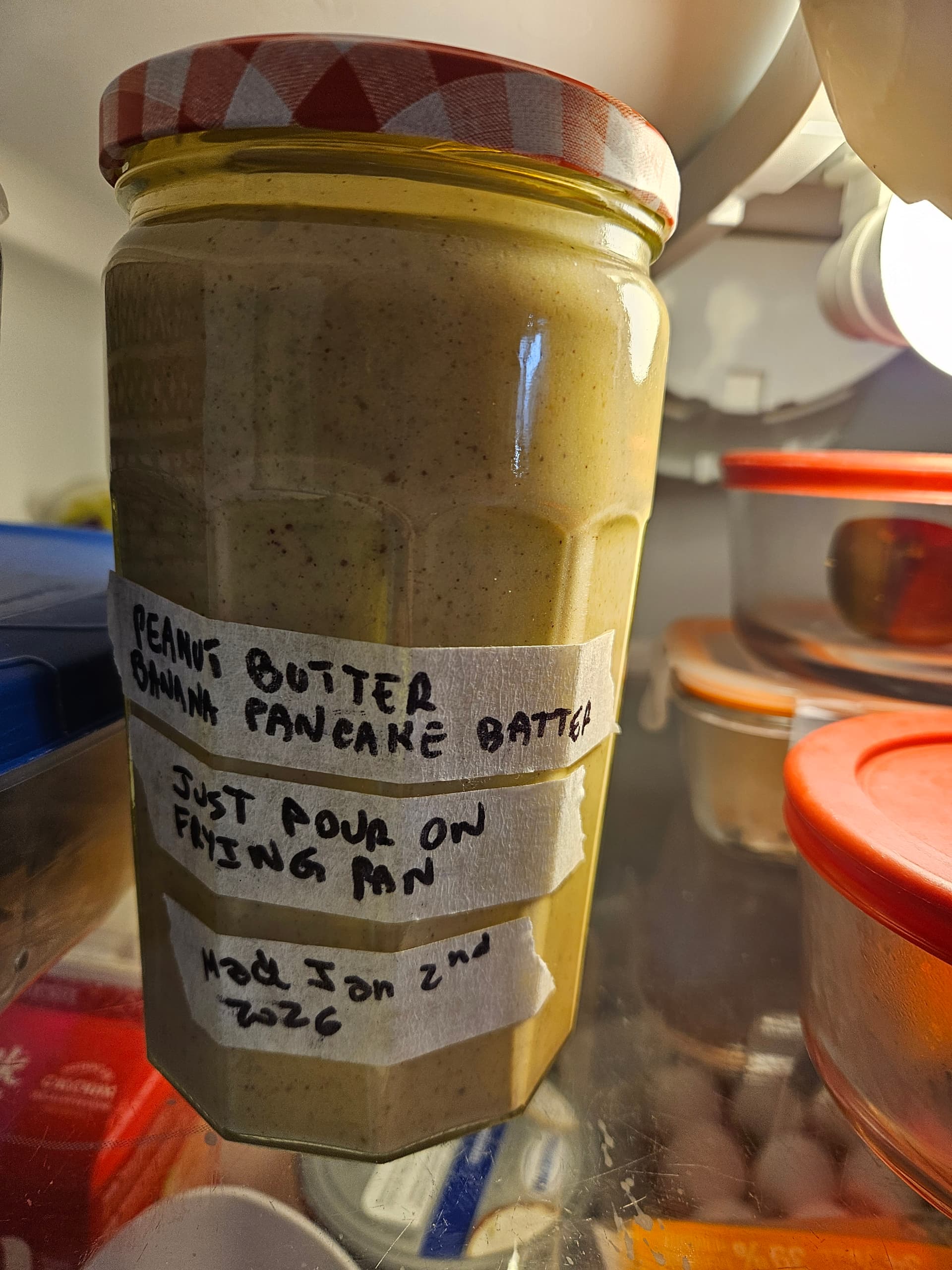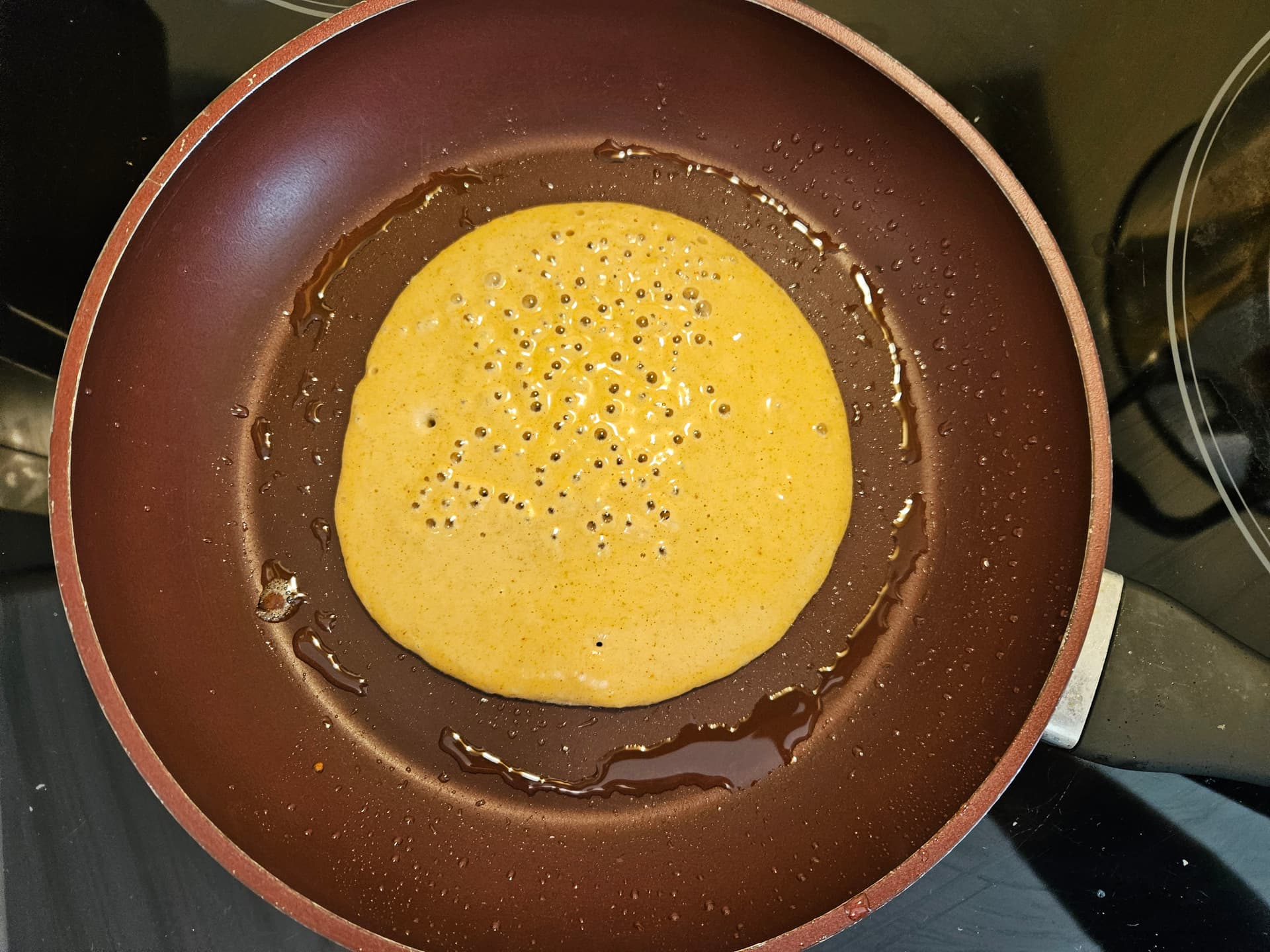 For peanut butter banana pancakes, you just mix eggs, peanut butter, and bananas, blend it all, and then pour the batter onto a frying pan. In hindsight, I didn’t have to mash the bananas… I could have just put them in chunks into the blender. Oh well. Next time.