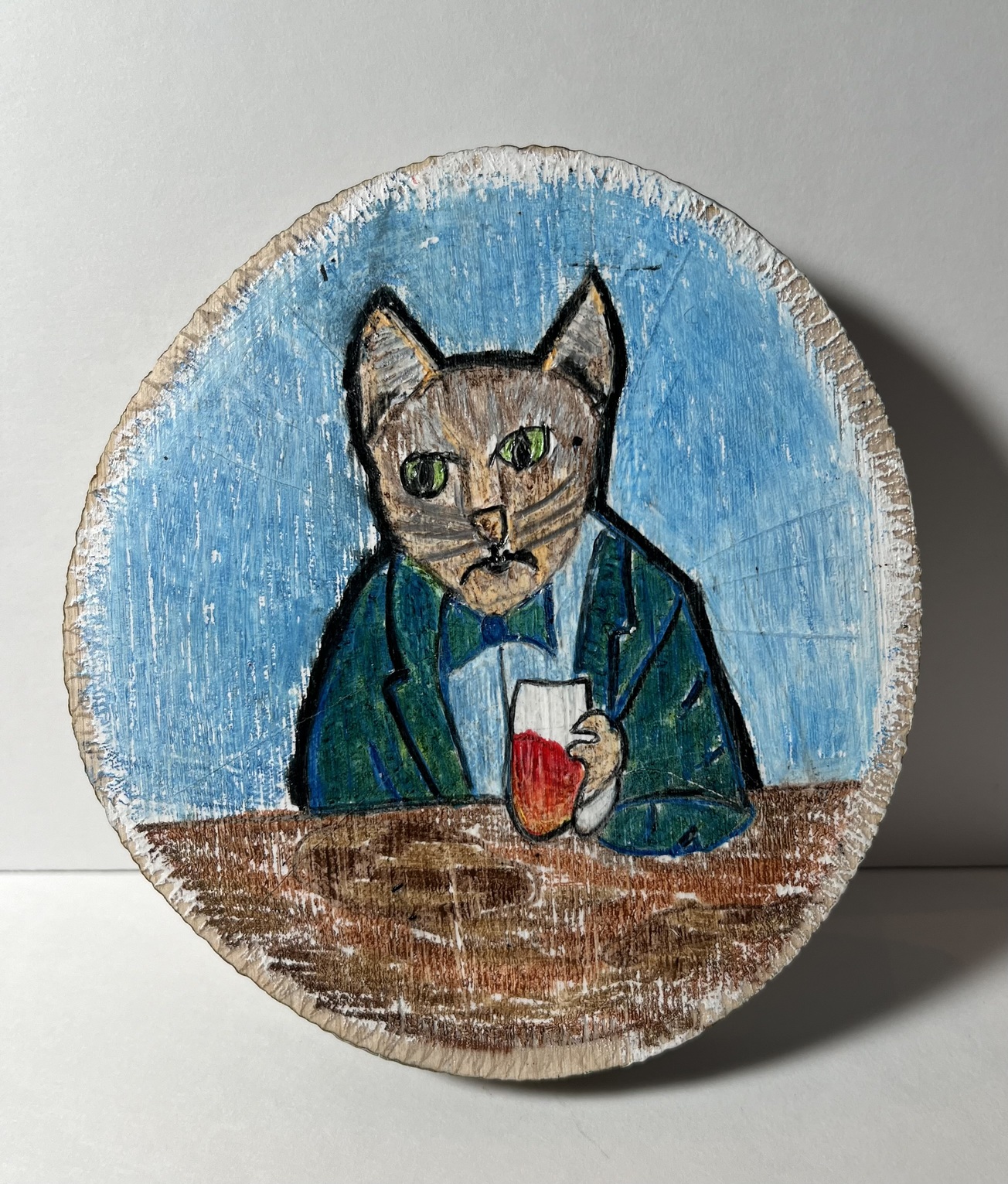 Kawaii monster! This is on wood and the little hand is cut out around it. How? In answer, yes, I’m happy to have a kwality monster!