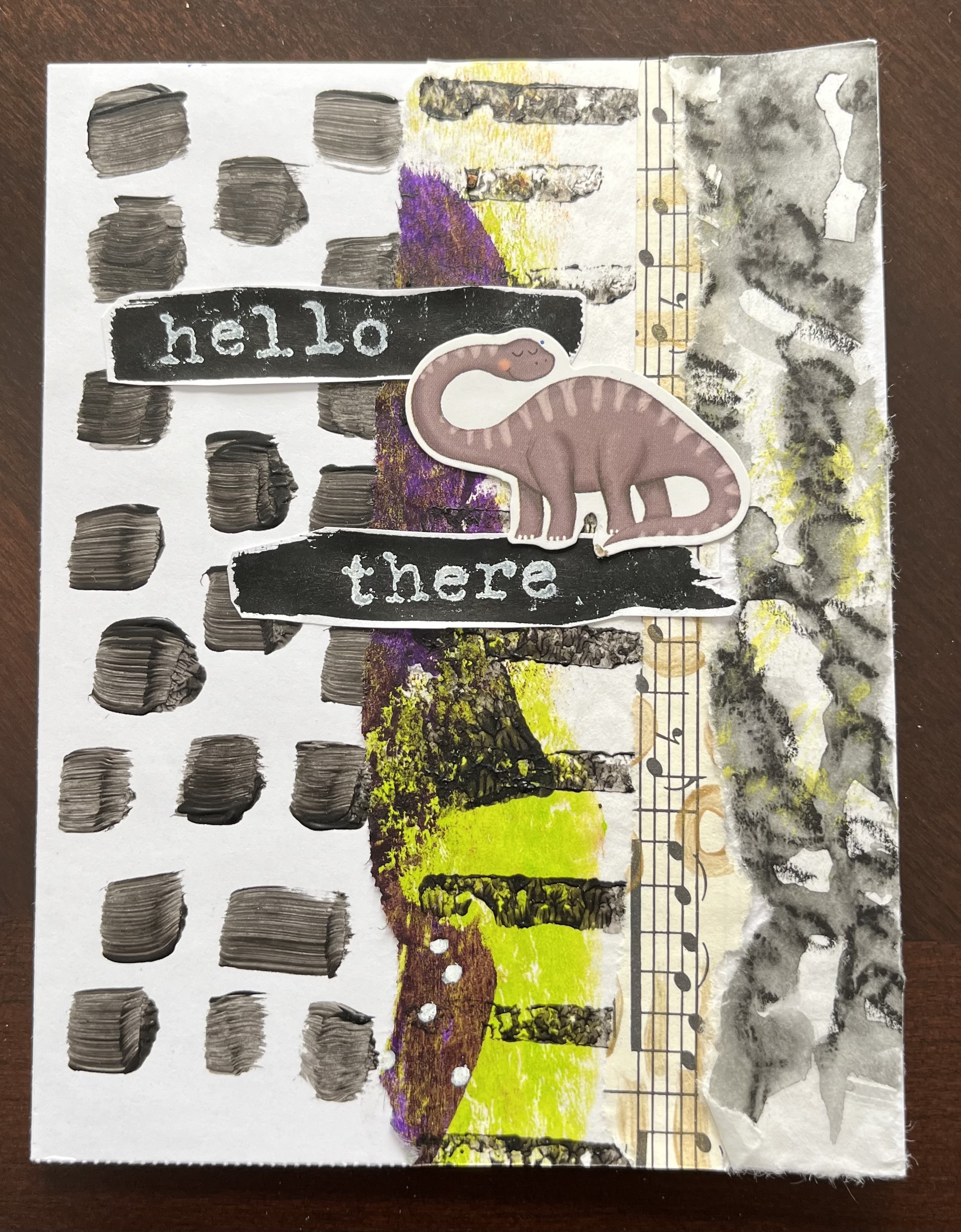 Received a great collection from @Abbeeroad today!  First off, a blissful dino on a collaged card: