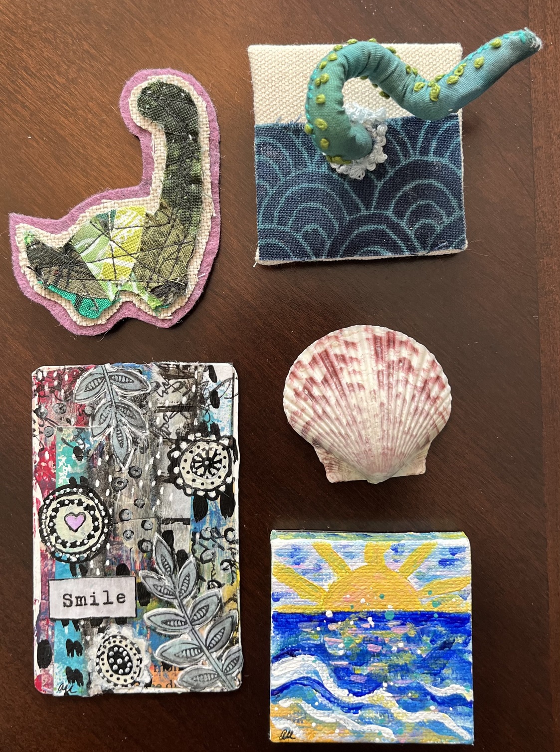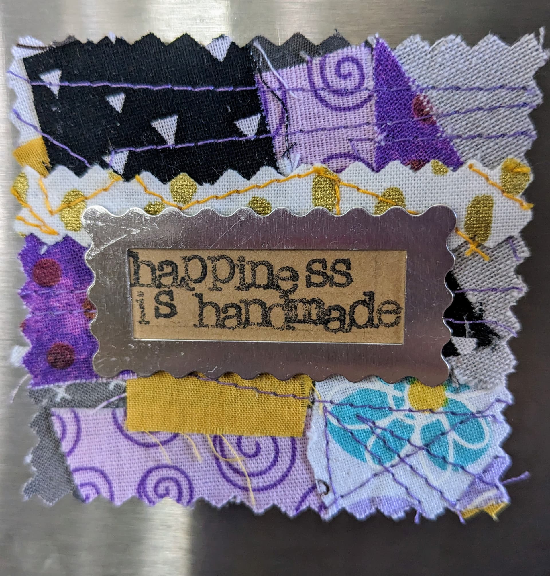 She made me a large scrappy fabric magnet with a very true saying on it.