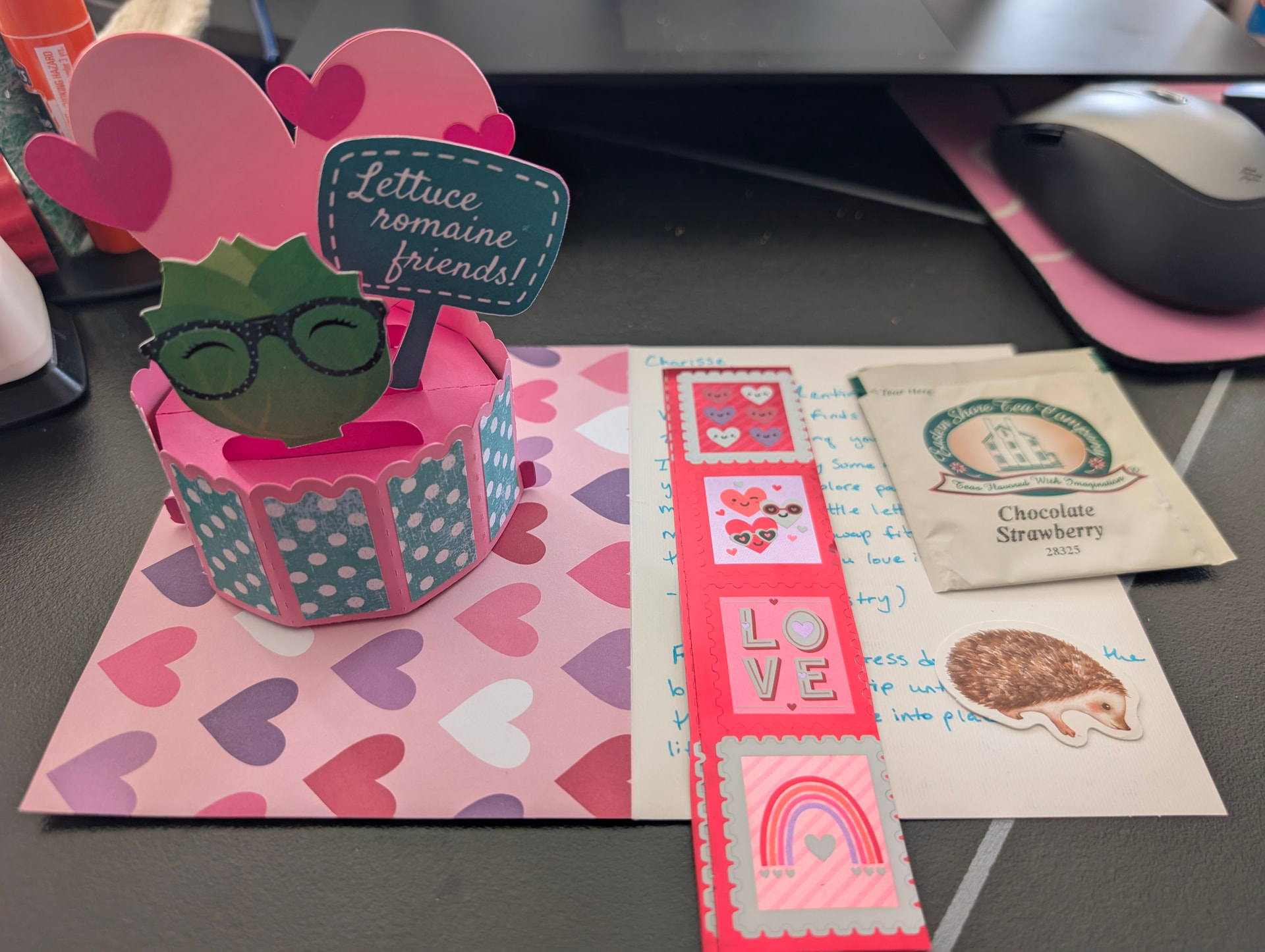 I love, love, love the cute stamp style card and all the tiny details bring each “stamp” to life. Plus that tiny notebook is so cute! Thank you, @TheMistressT for the perfect galentine and your lovely note.