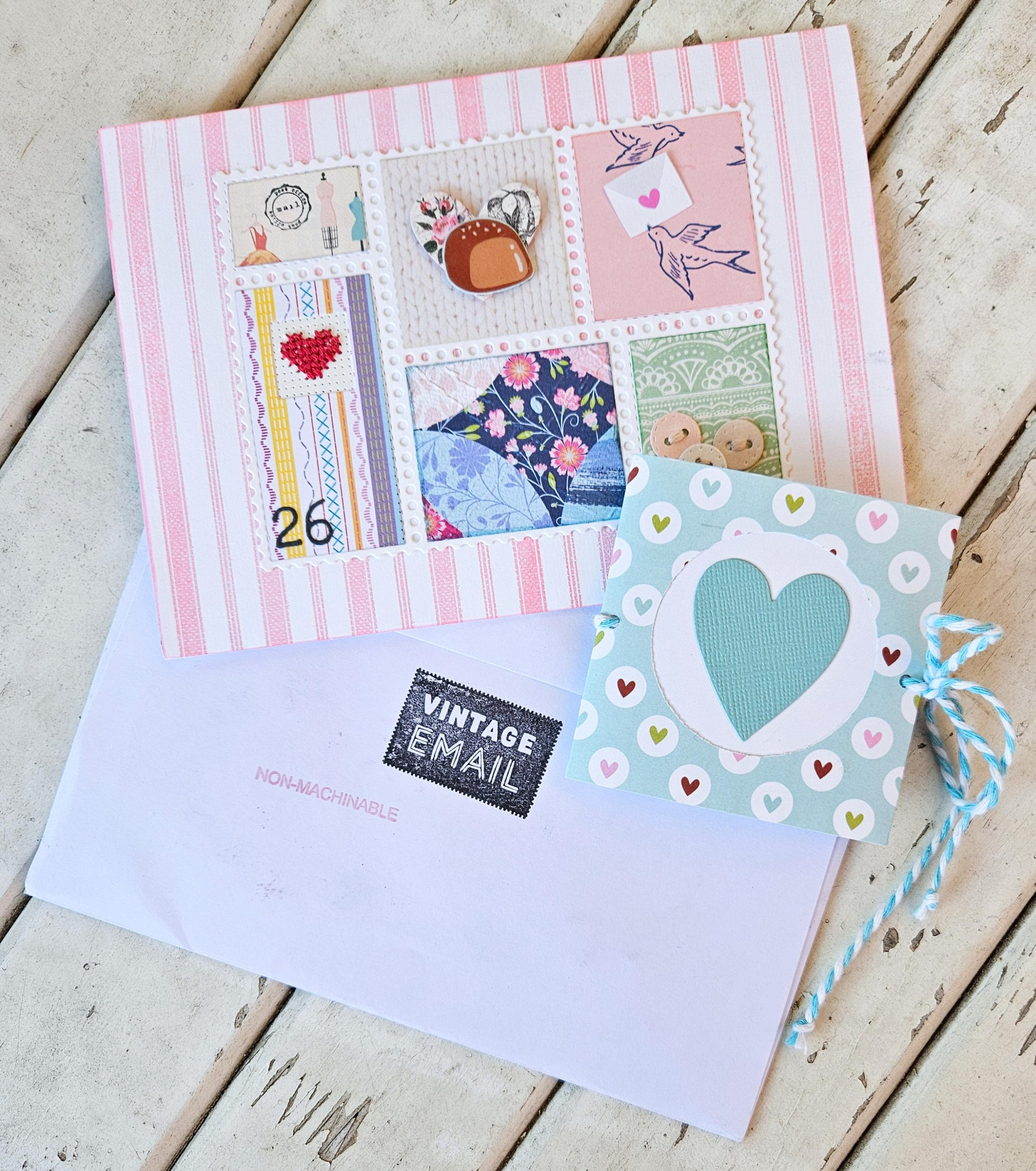That pieced heart is wonderful. I love the vintage feel of it.