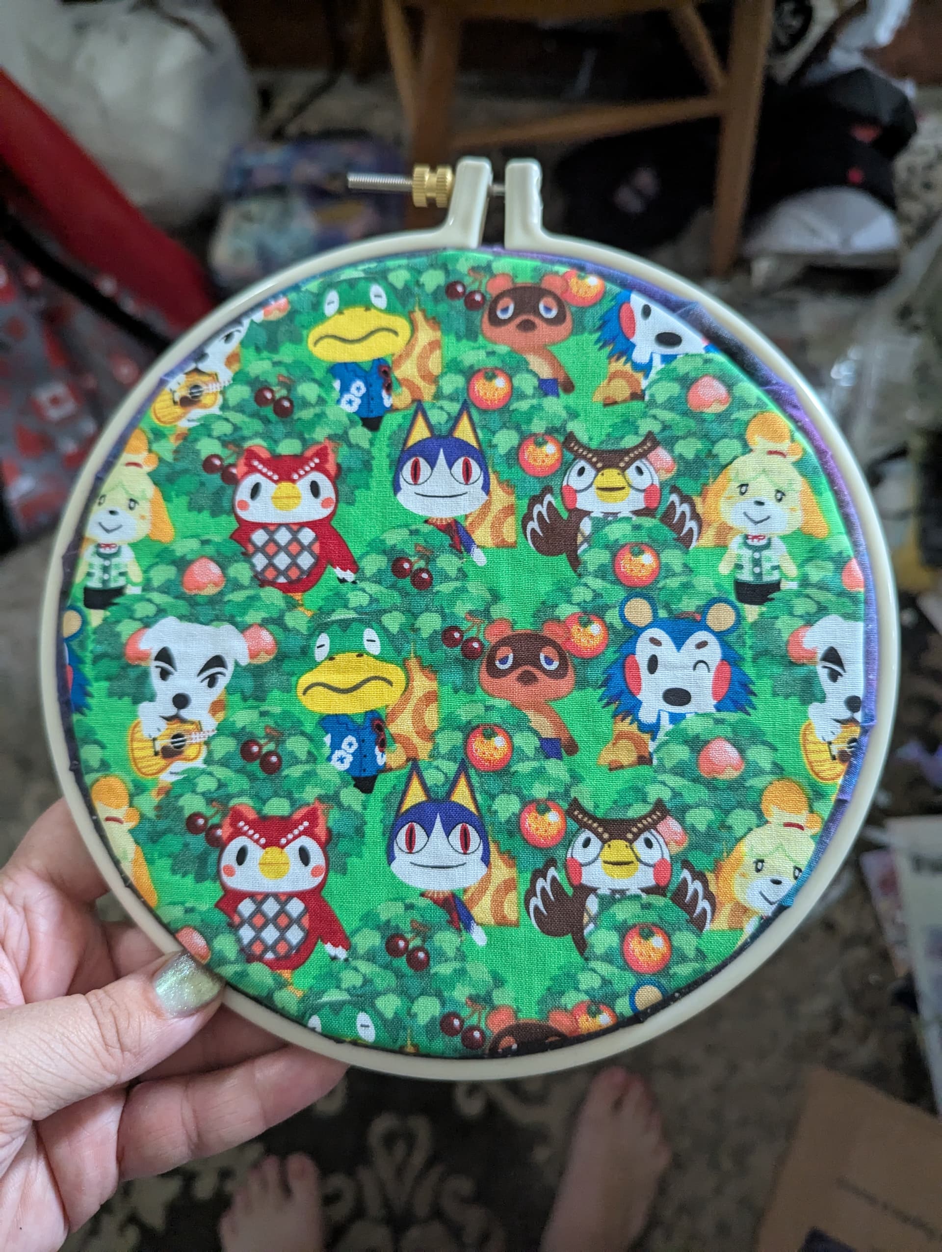 The back has the cutest matching fabric and I even got a animal crossing few stickers.