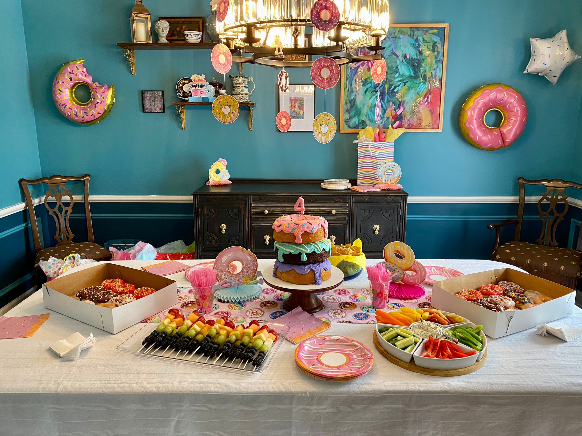 My daughter turned 4 today! In January I started asking her what kind of birthday party she wanted this year, and after rattling off 7 or 8 ideas, she suddenly yelled, “No, wait! Donut Party! Because donuts are treats, and if I have a donut party, there will be lots of treats at my birthday!”
