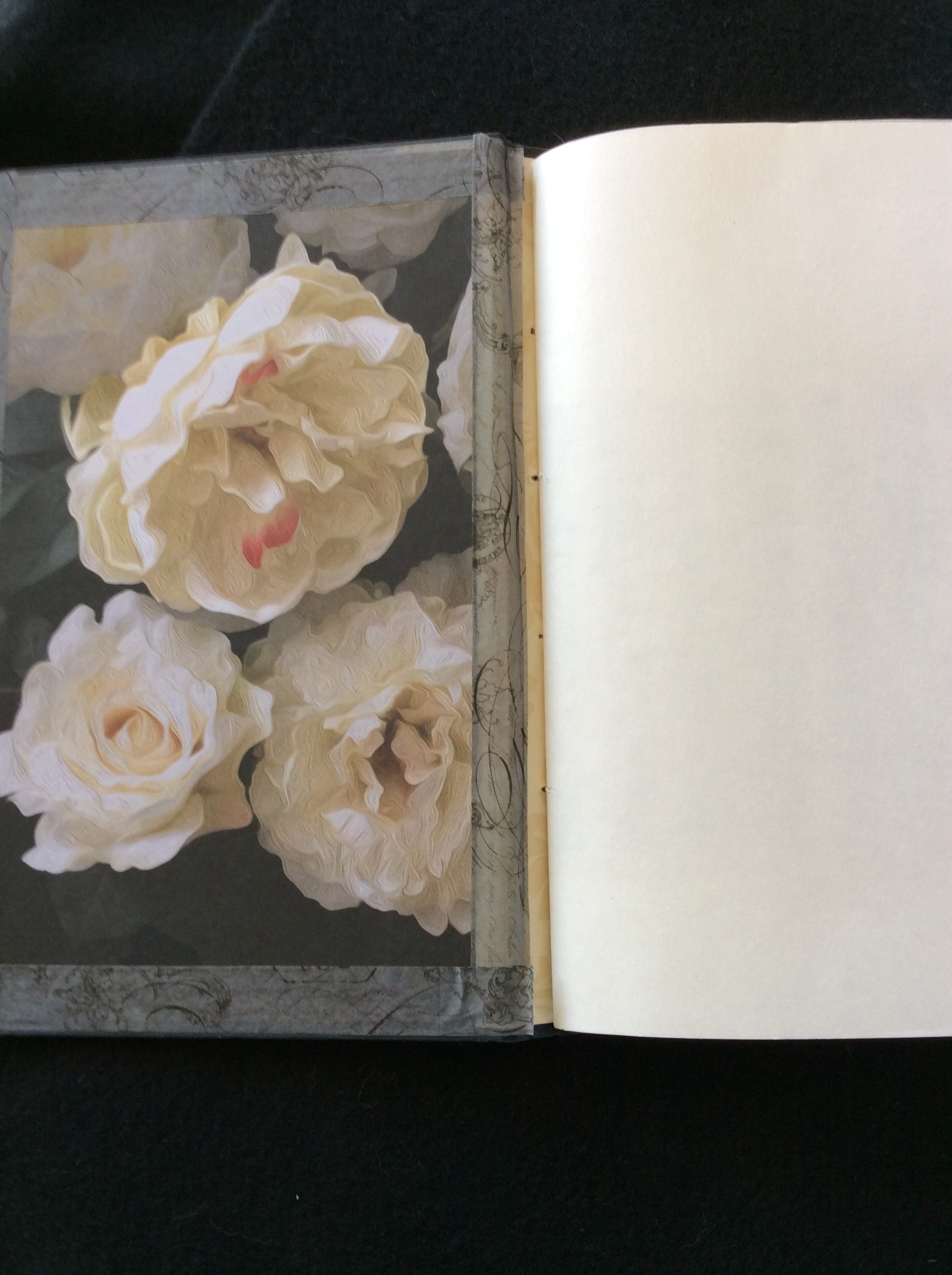This is my second attempt at an altered art book journal. I used a throwaway book from the library for the cover, scrapbook paper and kids drawing paper for the interior, and some washi tape for the spine.