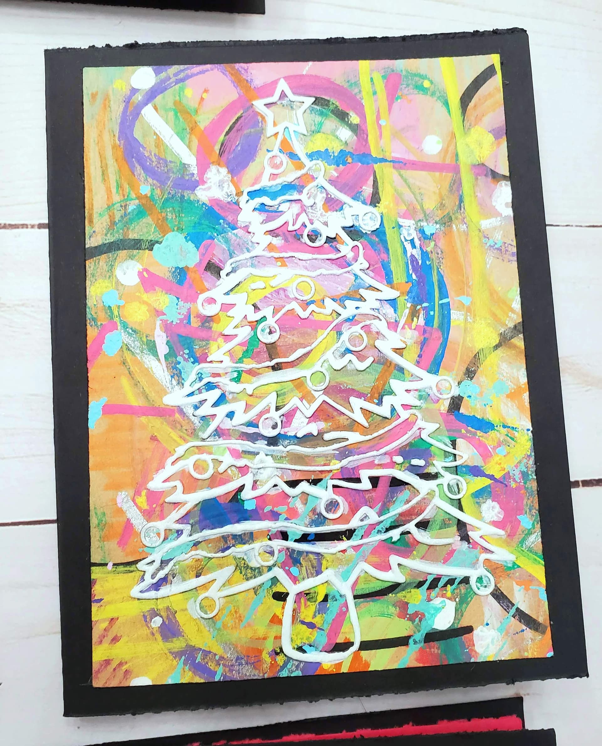 I then fussy-painted all of the trees with white paint pens. I had to do about eight layers of white to get the needed opacity. I’d just do a coat here and there while I was sitting in the living room.