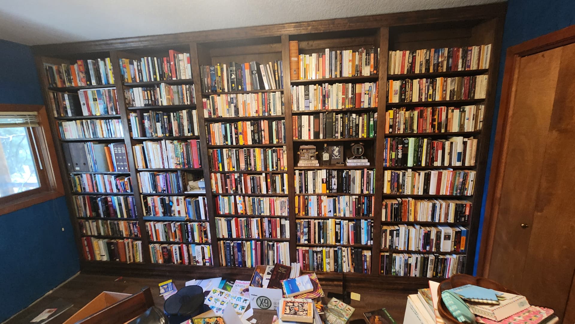 Along the way, a few friends were politely baffled about why so big? Why 30-odd shelves? No matter that I showed them all the boxes full of books, the guest room shelves full of books, sometimes two-deep, the shelves in the guest closet filled with books (also 2 deep). And yet…