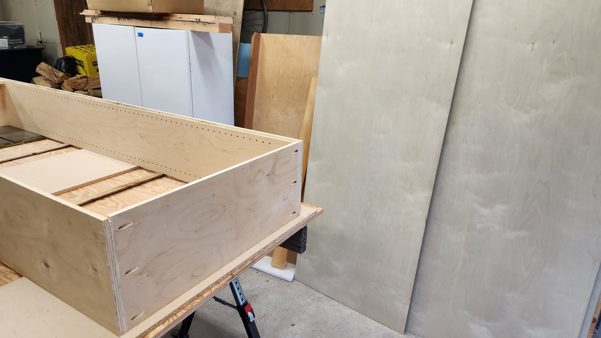 Then I made 5 individual cases. February in Montana in an unheated shop is not the best time to do woodworking, so I set myself this parameter: if it is at least 25F, I will work at least 2 hours, at least 5 days/week. I mostly stuck to that! They have adjustable shelves which required lots and lots of drilling using a jig made for that purpose.