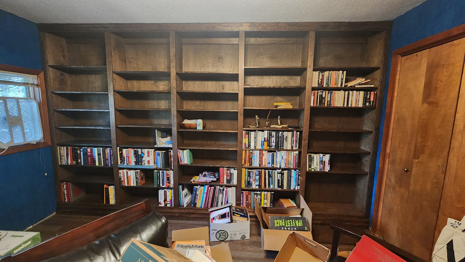 This project was 5.5 years in the making! Because in mid-July 2019 I almost finished replacing out upstairs floors with a floating LVP that could not tolerate a full bookcase upon it and we had a… really full bookcase. In February of this year (2025), I finally screwed up my courage to start the Big Built-in Bookcase project I decided would be the solution way back then. It took me about 5 months to complete and High Five Challenge helped push me to finish in July!