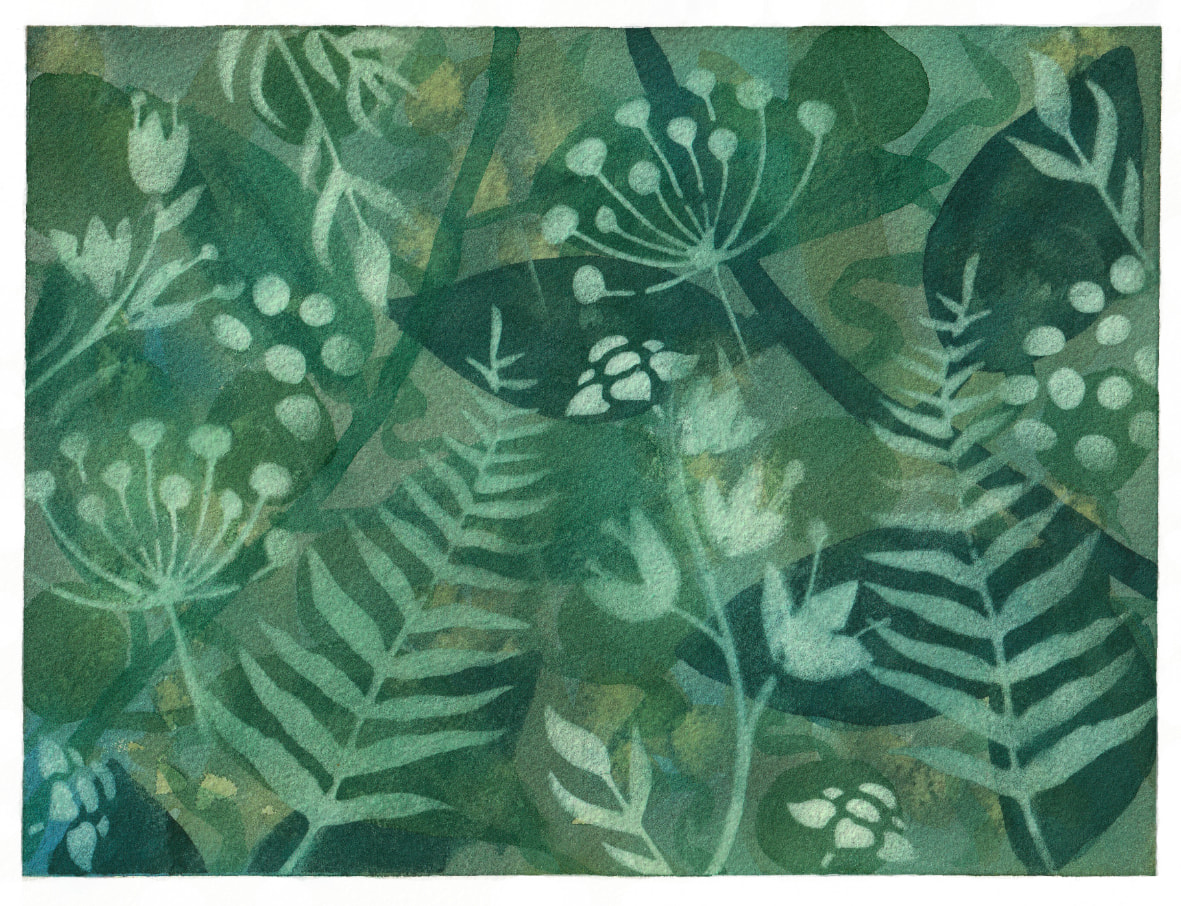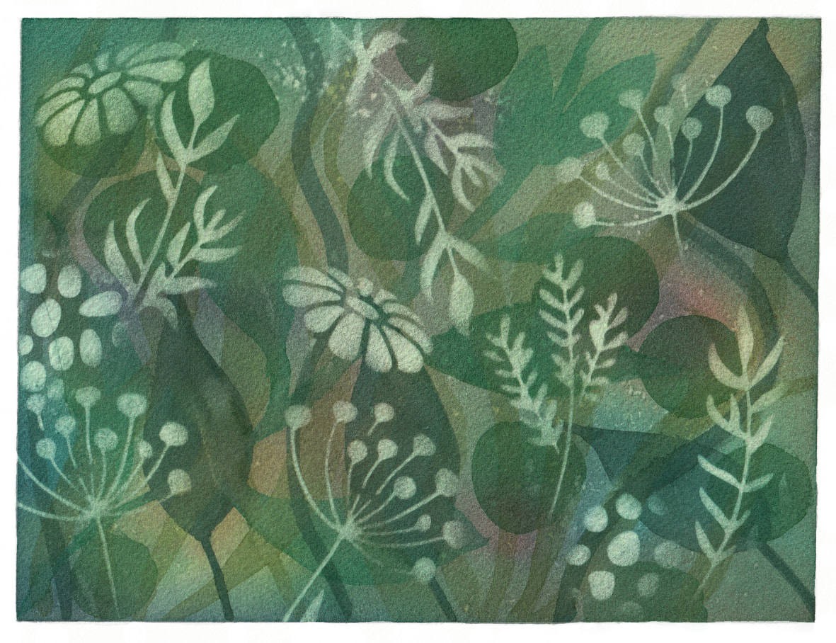 (Reverse stenciling inspired by Krista Robertson on YouTube.)