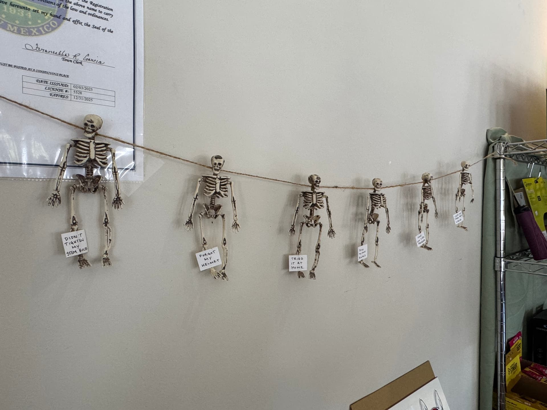 These are crafts from years past, but I finally put up my bike shop Halloween decor…