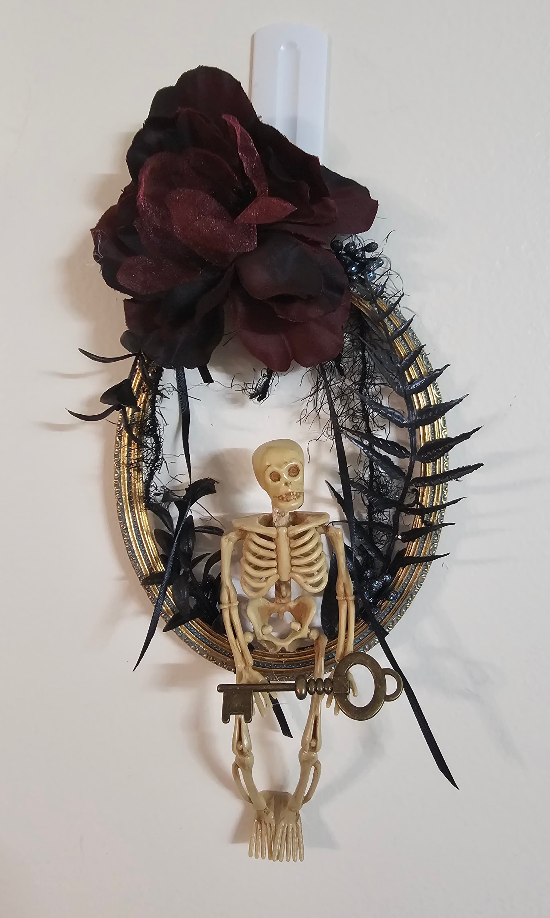 My “wreath” made from a frame for the All Hallow’s Eve swap.