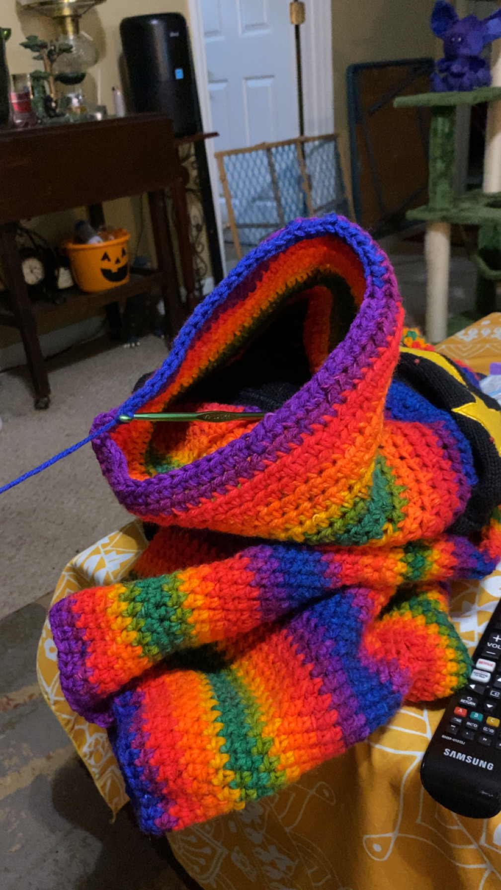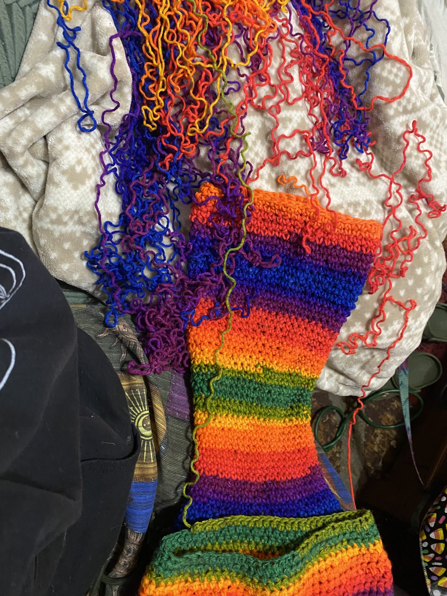 I have seen that yarn and love everything rainbow. I like that it is a bright rainbow. Well done!