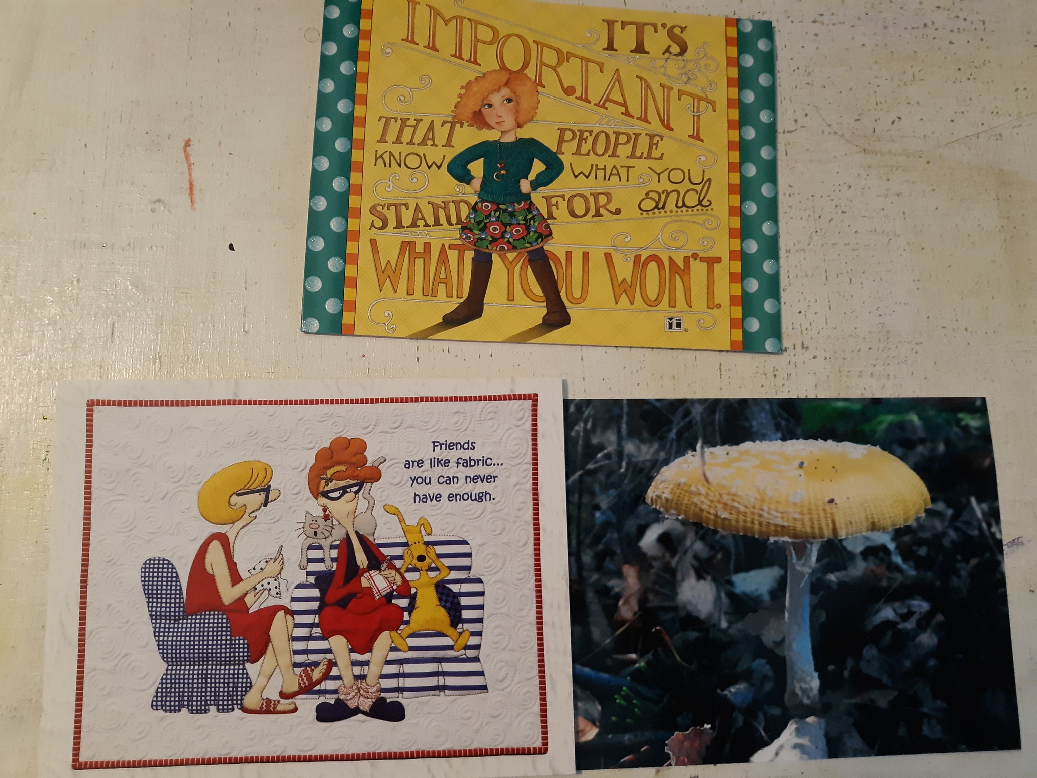 I forgot to post my wonderful mushroom picture from @Cindy! She sent it in a cute card about our shared love of fabrics! Above it was a nice card from @whistlefish that I also forgot to post!