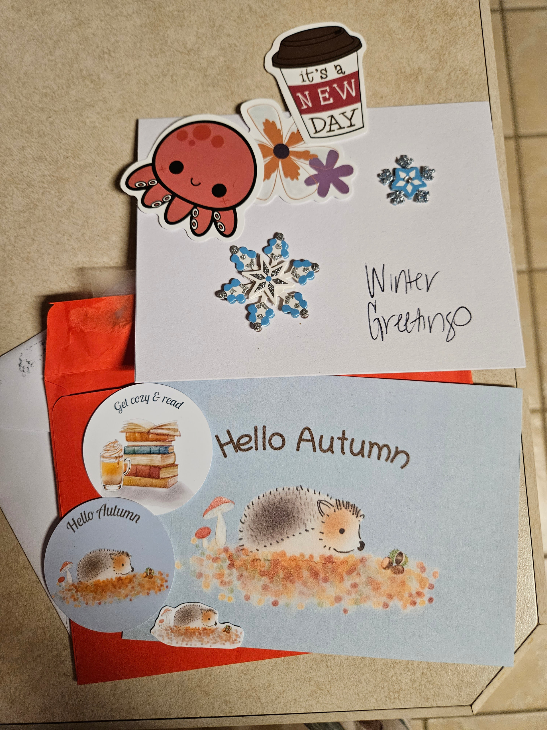 I got the cutest Autumn postcard and lovely note from @Silky_Bee today. It must have come via around the world once or twice! Thanks! Better late than never, right?