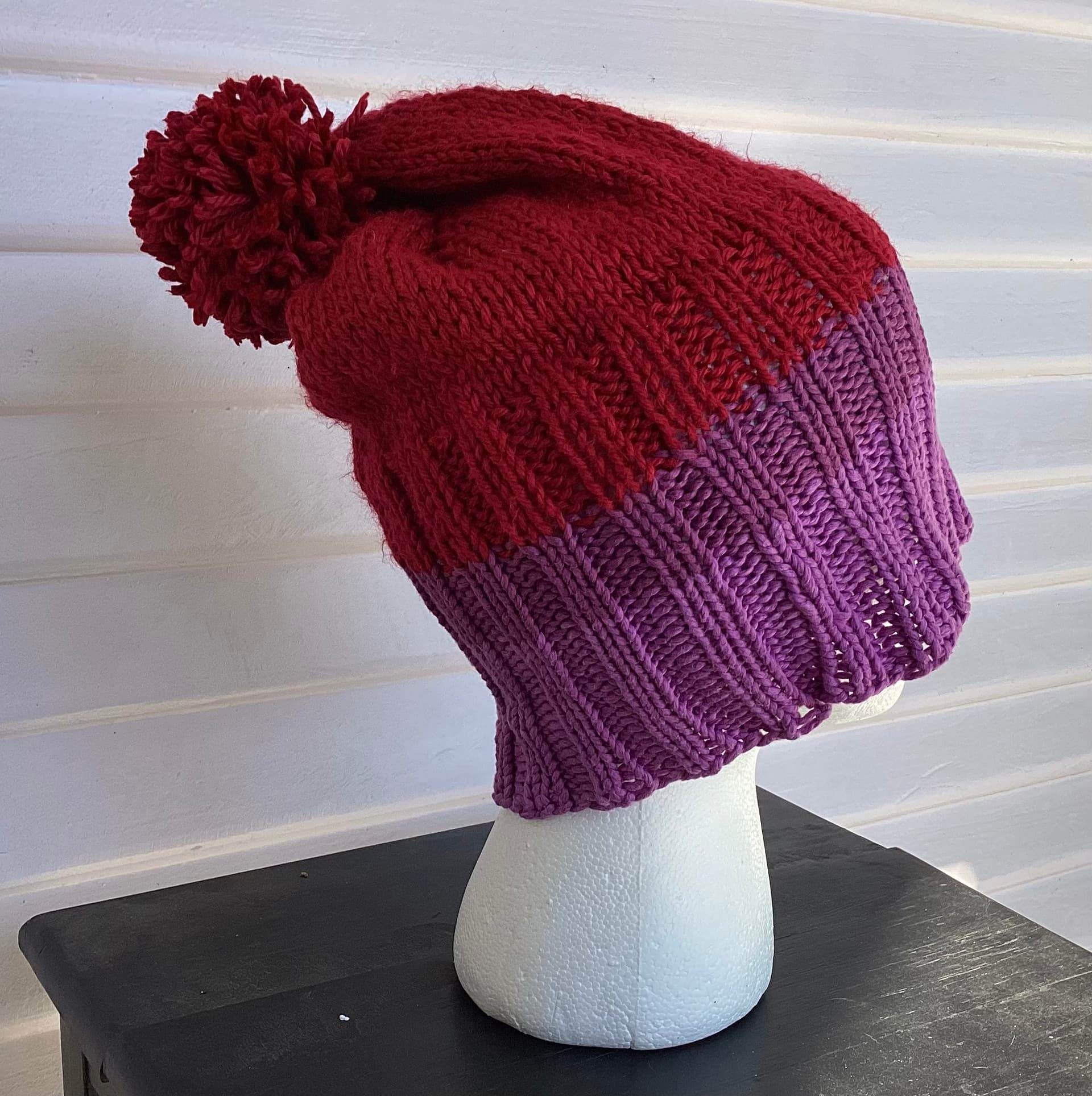 A hat normally takes me a day to make. This hat took two days of knitting, ripping out, knitting, ripping out. I messed up and knit one section inside out. I missed a few stitches and got thrown off pattern in another section. After redoing and redoing, I finally finished…the hat is too big for my head! I swear I checked it three times! UGH!