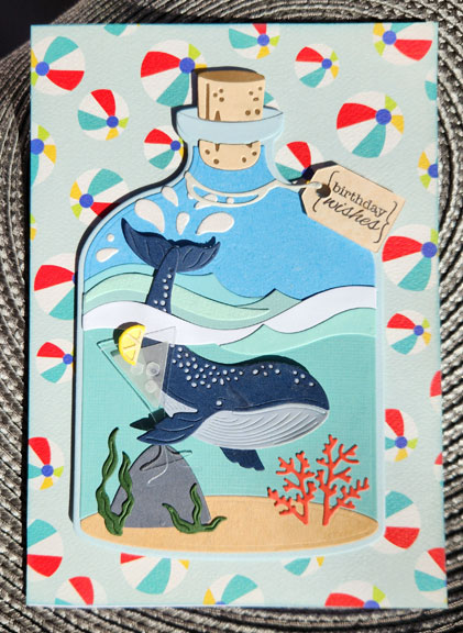 Everything but the cocktail is from one die set. My friend’s adult beverage of choice is the vodka and tonic, so I used a few vellums for the contents and acetate for the glass.