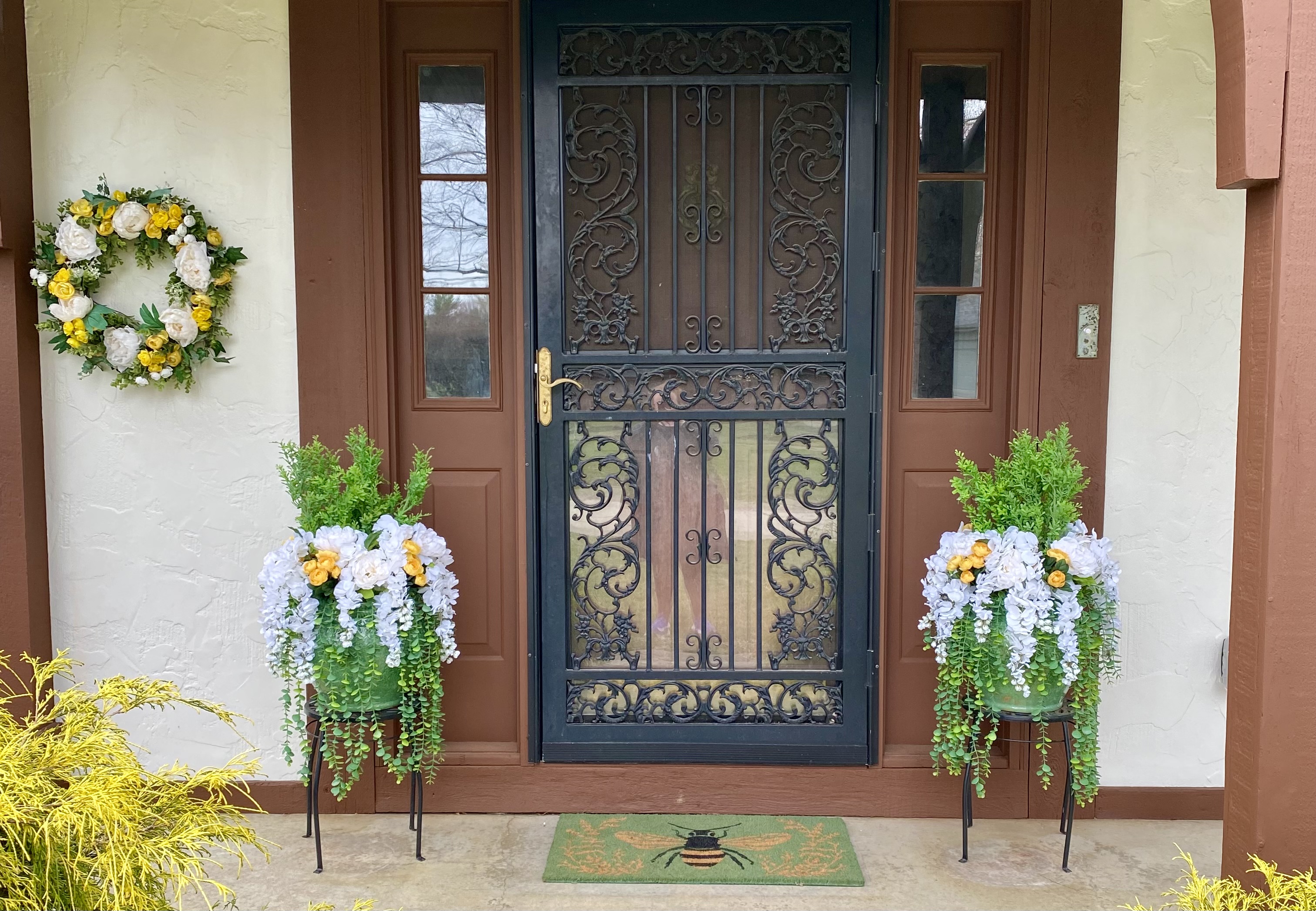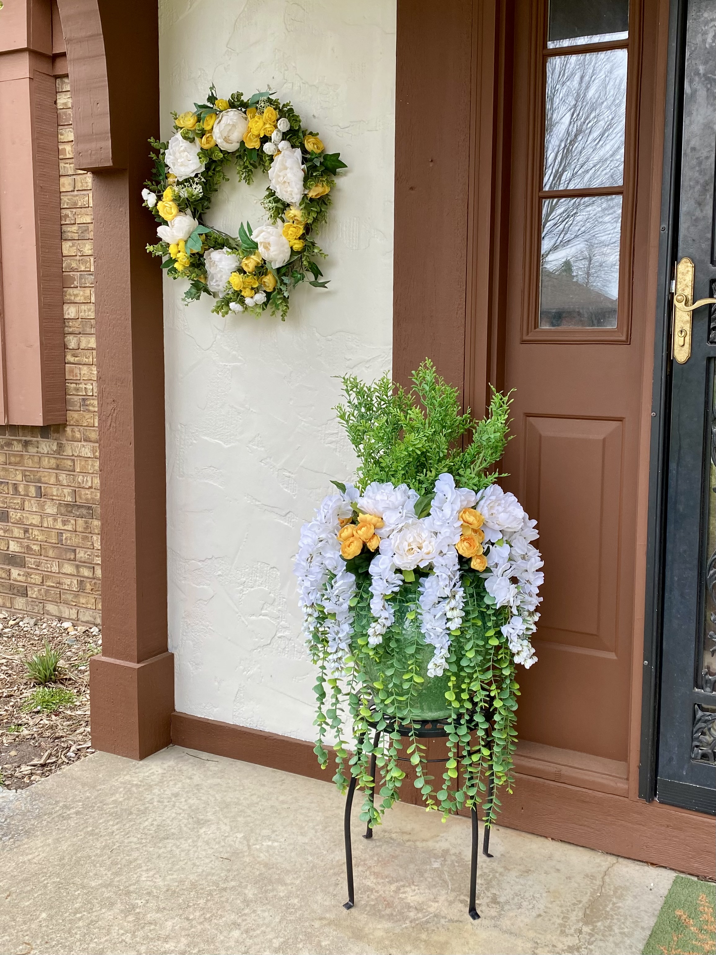 Confession time: I hate keeping plants alive. With the number of things that I have to do everyday, I just don’t have spare time or headspace to go water them. So I just made real pots full of faux flowers for my porch. I’m hoping to make a few smaller ones to go on the other end, near the wicker chair, but this is a good start for Spring.