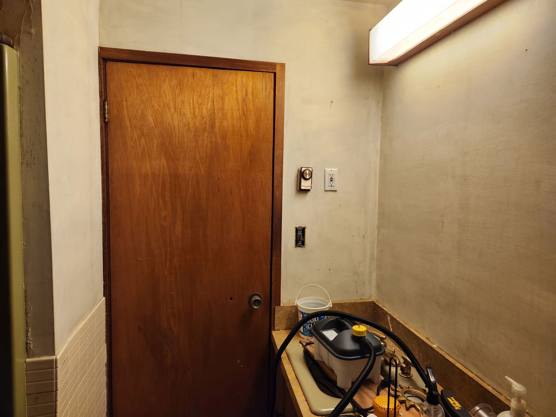 It’s the 2nd floor & nothing in the room is accessible so, nope. The guy just had “ideas”. He was handy but also a stoner, lol. The kitchen has an awkward centre island and the counters are all poured concrete that chips but how will we ever remove it? Such a bad idea.