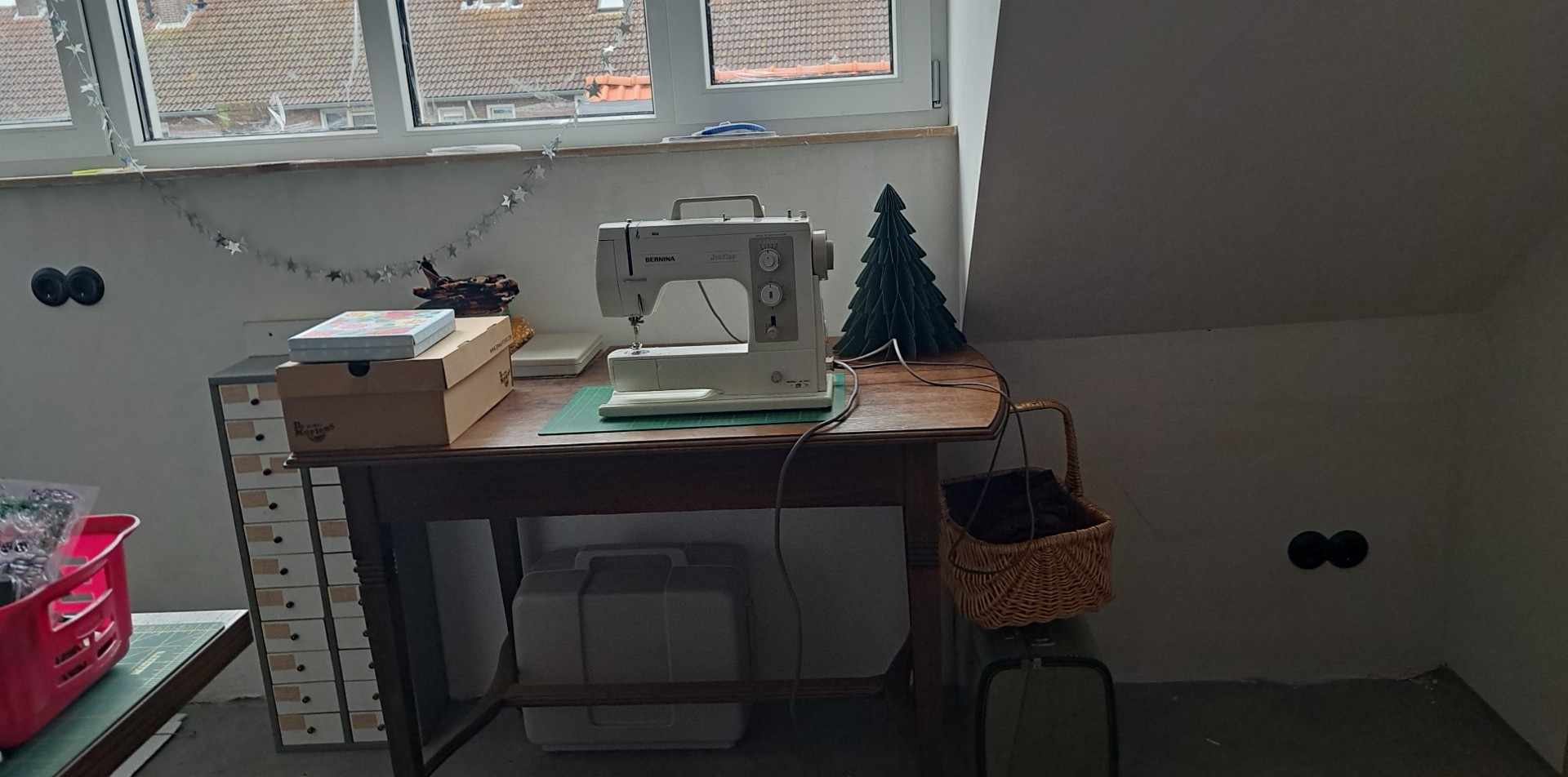 Since it was the only warm space in the house I spent Friday night in my craft room! I’ve already unpacked a lot of my supplies but it has also been a drop off site for a lot of things, so it was a MESS. It had four dining chairs that I carried back to the living room and some stuff I’m planning to hang up today (mirror, light fixtures). That’s totally not my very full mending basket to the right