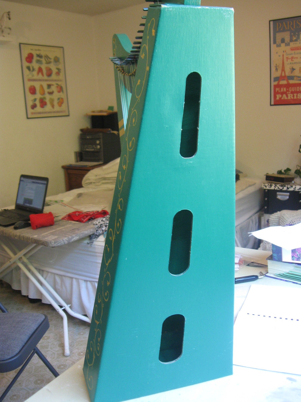 Thanks, @pookie and @artsycandice! Green is my happy color. It is bigger than I really wanted, but apparently I had unrealistic ideas about what size a “lap harp” ought to be. But it’s ok. Now I’ve got to make a case for it…
